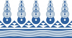 The wavy lines at the bottom of the design represent wai (water), a source of life and knowledge, and symbolize the underground waterway that once flowed through lava tubes and connected Keanakamanō (The Cave of the Shark) Valley at our campus’ main gate with Pu‘uloa (Pearl Harbor), Oceania and the rest of the world. Our mo‘olelo (stories) say that the Hawaiian god Kamohoali‘i traveled this waterway in his shark form to Kapālama. The chevron shapes represent a shark’s teeth and also the island of O‘ahu.