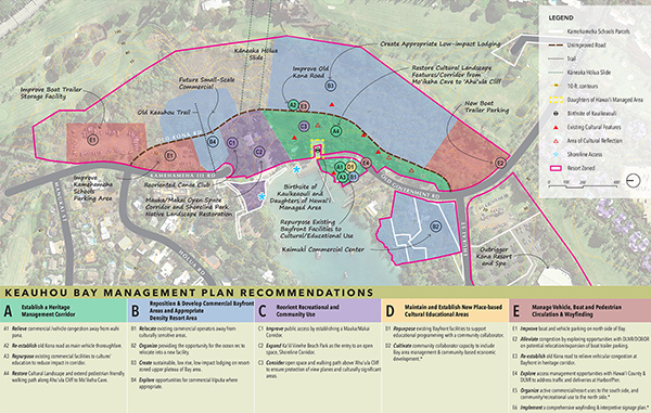 The KBMP also proposes creating new low-impact lodging on the resort-zoned plateau mauka of the bay. This reconfiguration will emphasize place-based cultural stewardship, enhance bayfront access for kamaʻāina and kupaʻāina, and promote high-quality educational experiences for all.