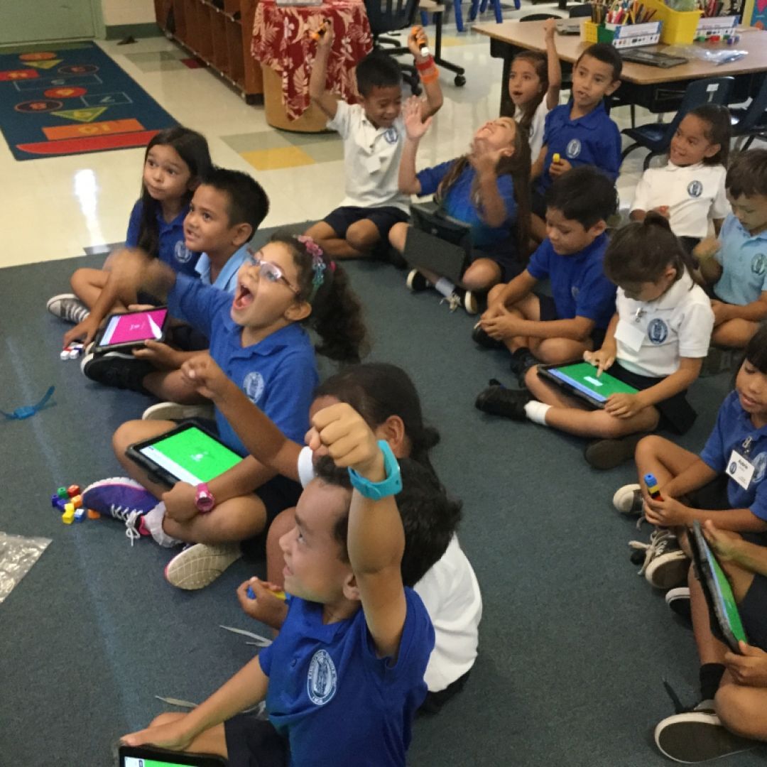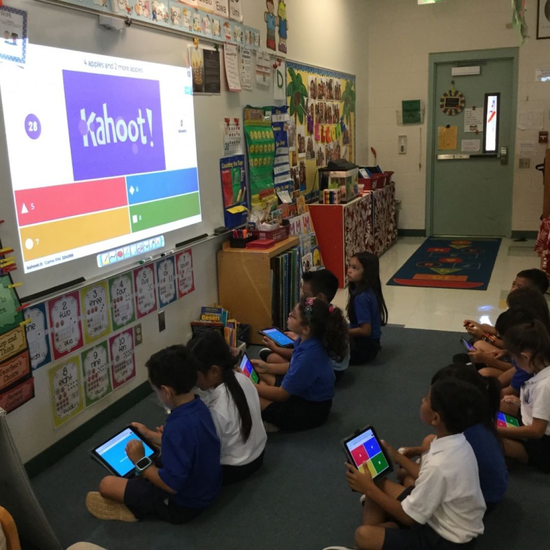 Papa ʻEkahi used Kahoot! as a fun instructional tool to show learning of addition concepts. Questions are displayed on the screen to help review strategies and lessons they have learned. Keiki worked independently and as a team to solve problems. Players used their 1:1 devices to choose from a series of multiple choice answers.