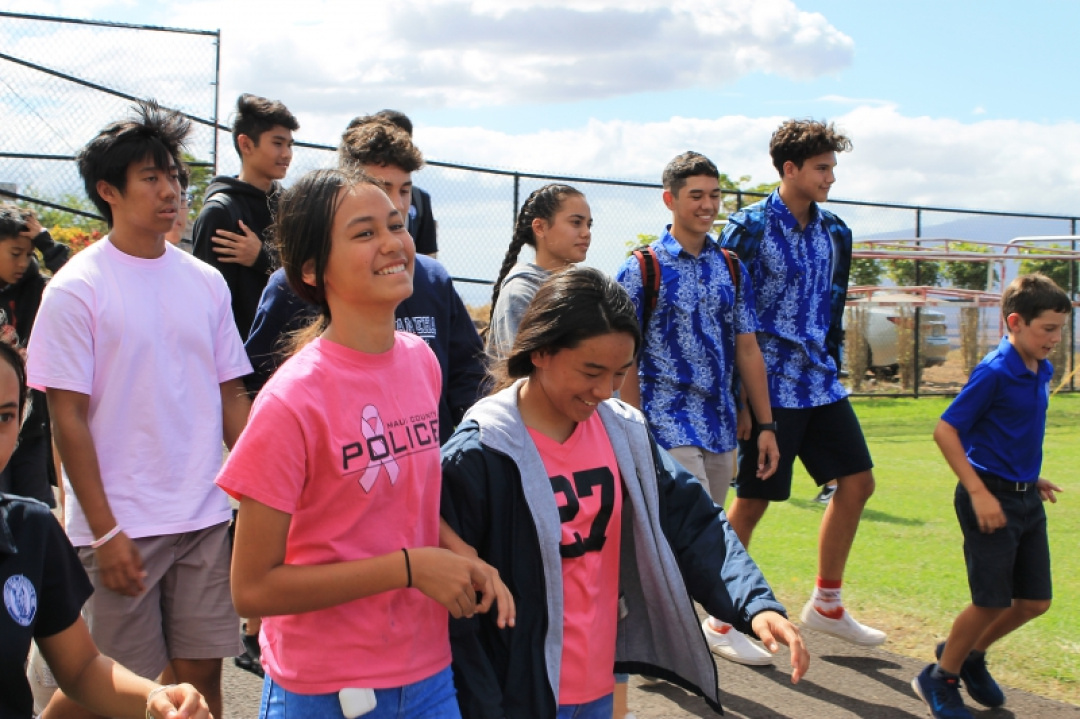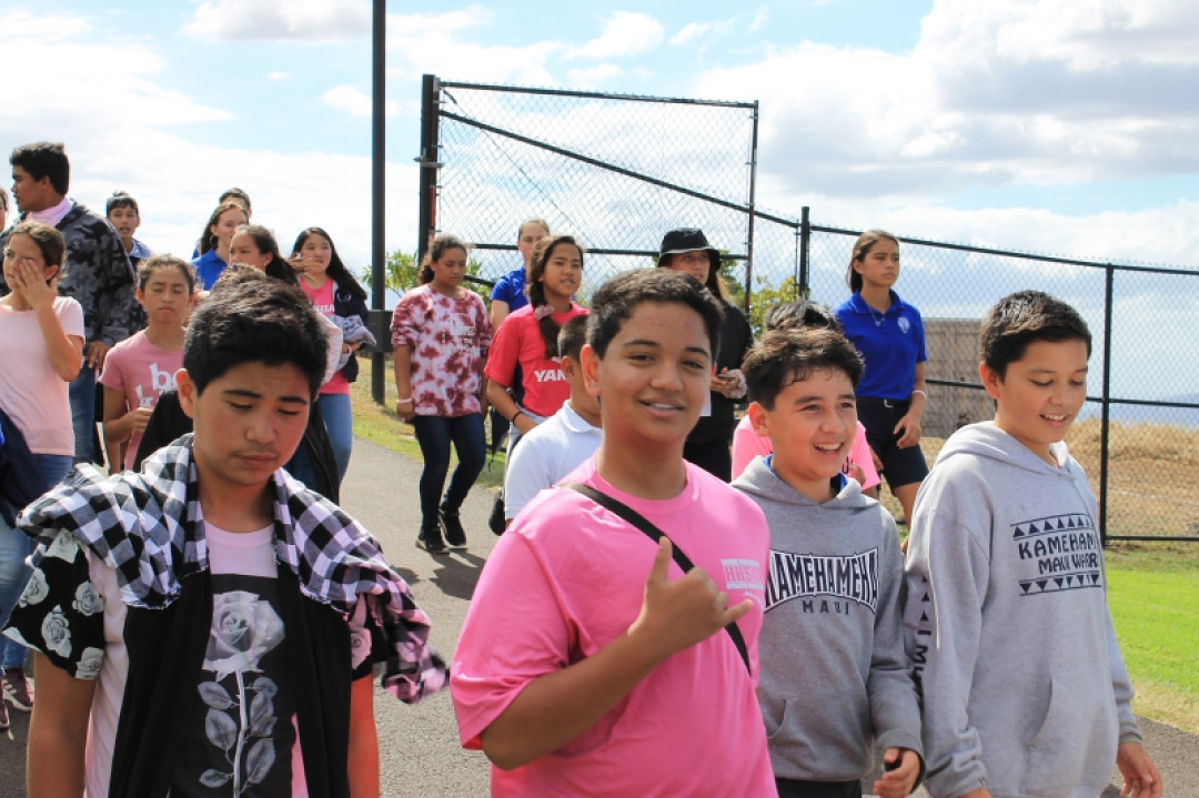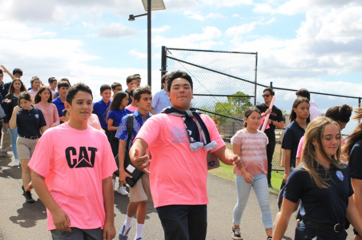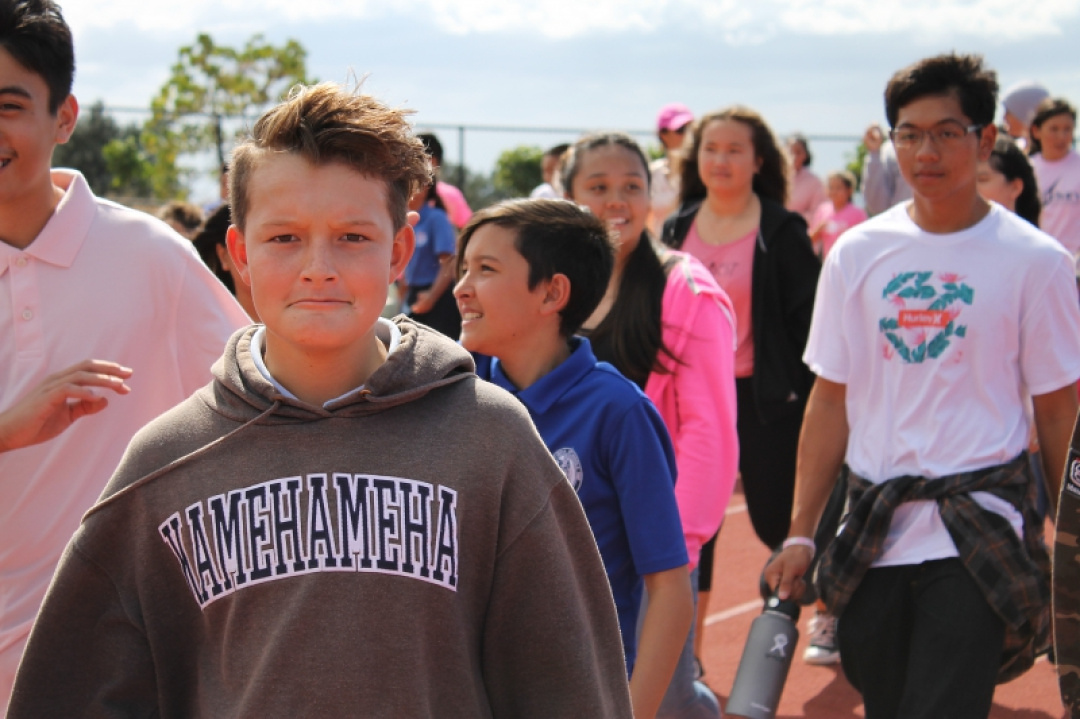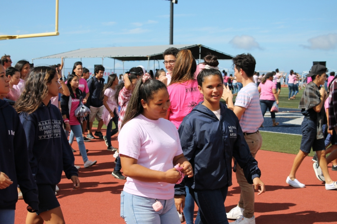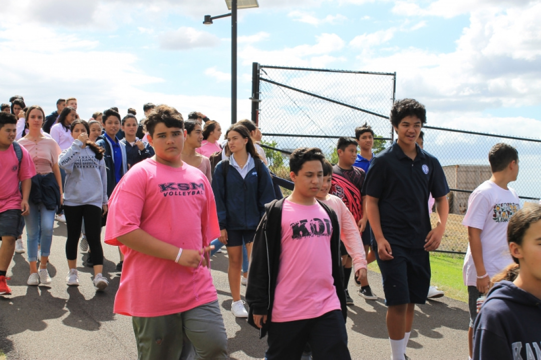 On October 18, 2019, High School Senior Mahie Borge organized the 1st Annual Walk for Pauahi to bring awareness to Breast Cancer. Our haumāna and staff wore pink and gathered at the High School track to walk, run, or chat the afternoon away with friends as they were entertained with music and hula.