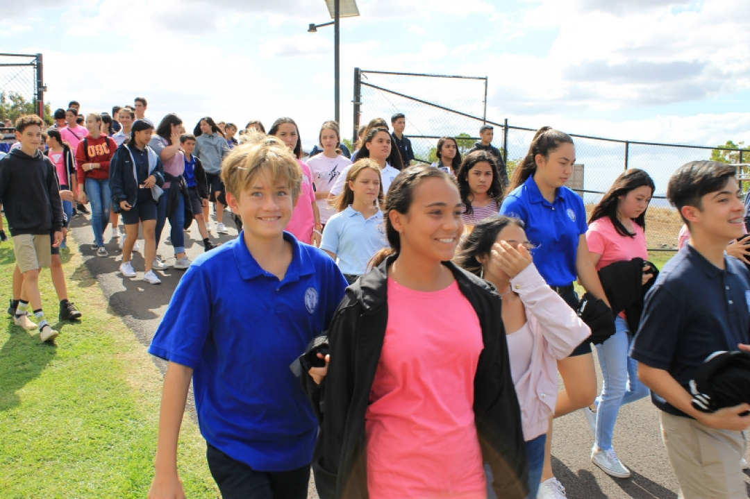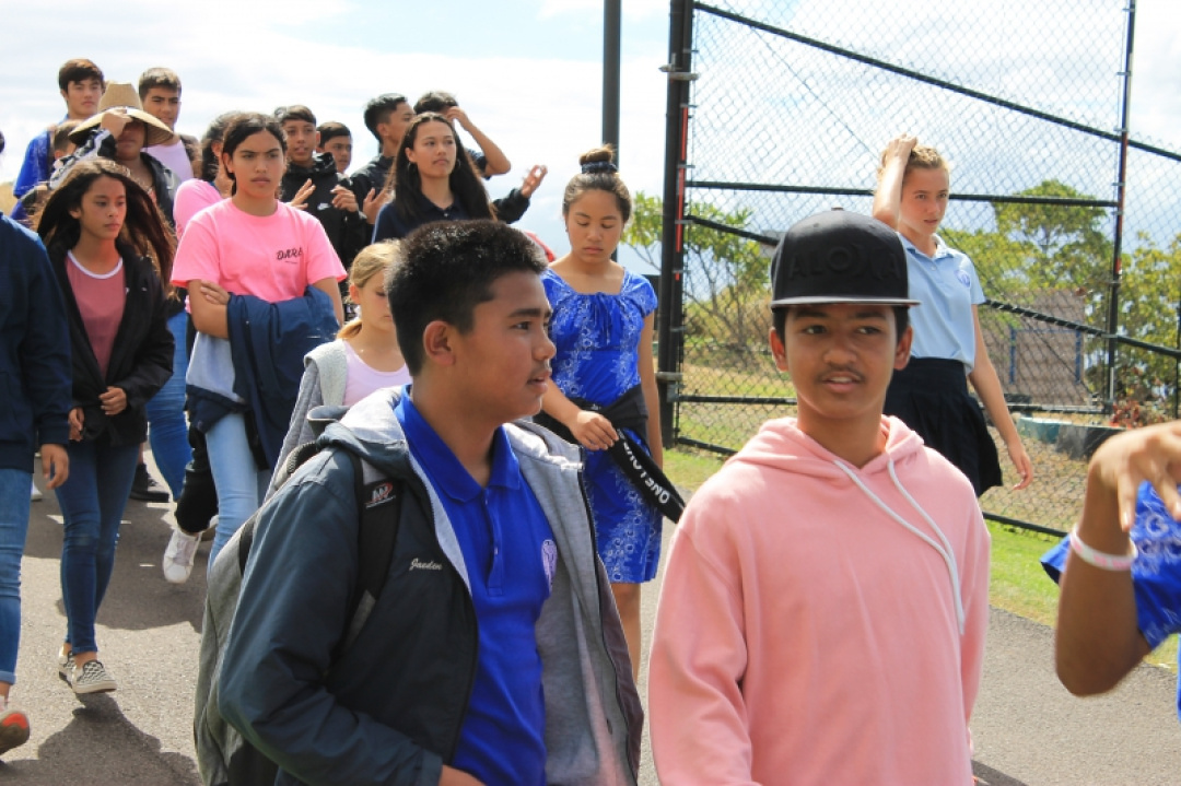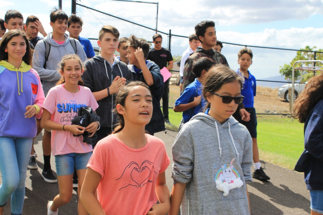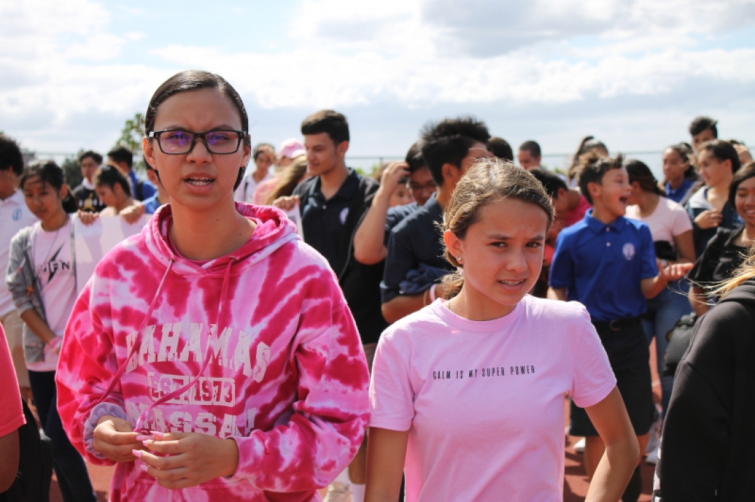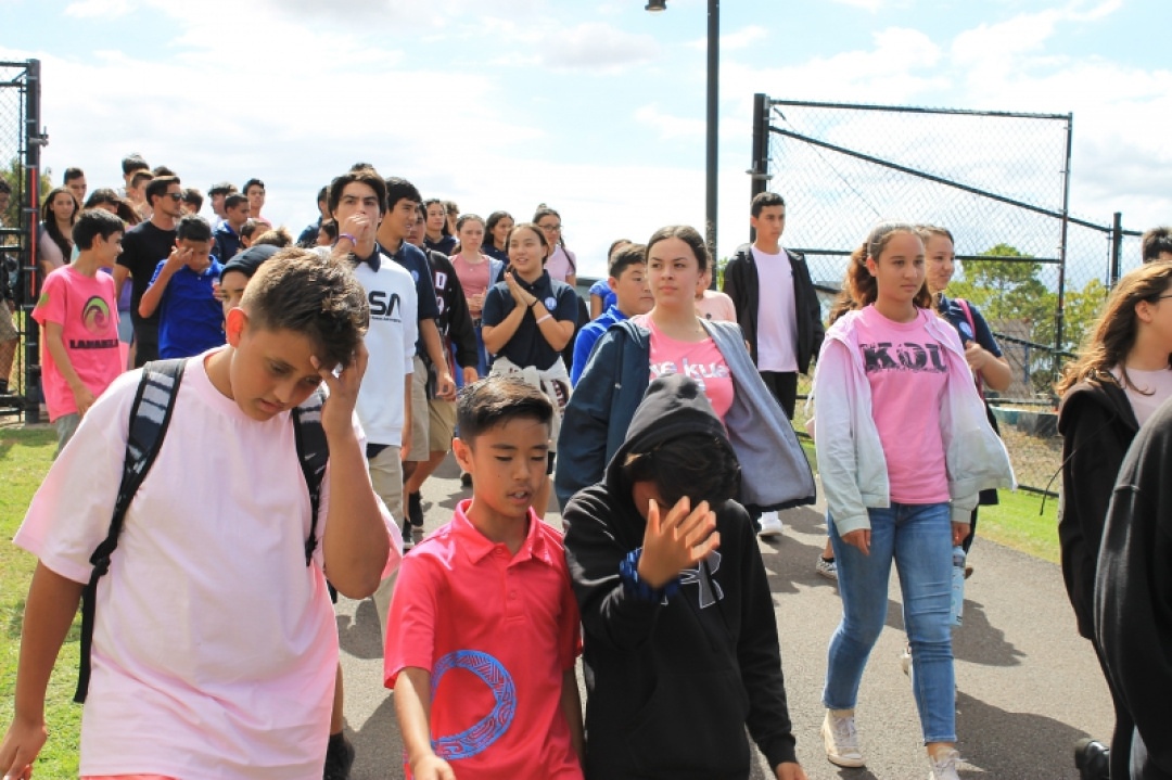 On October 18, 2019, High School Senior Mahie Borge organized the 1st Annual Walk for Pauahi to bring awareness to Breast Cancer. Our haumāna and staff wore pink and gathered at the High School track to walk, run, or chat the afternoon away with friends as they were entertained with music and hula.