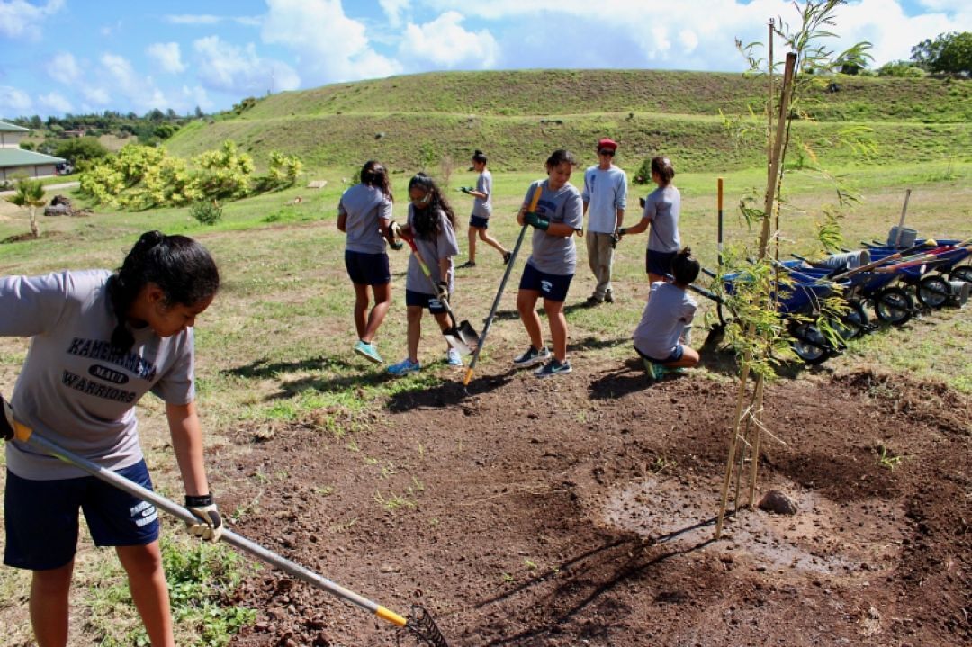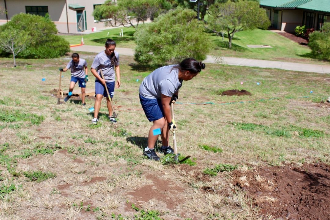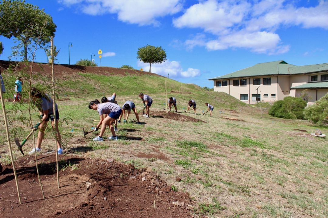 Mahalo nui to Uncle Nio for teaching our 8th graders the importance to målama our aina. All 8th graders tested their physical strength this past week, working hard at the Kapiko site. Many hands made quick work in planting koa, digging trenches and moving rocks. At the end of their year-long PE conditioning course, students will compare the difference in their stamina and physical abilities. When the haumāna return later in the year, they should be able to plant even more koa, dig deeper trenches and move heavier rocks.