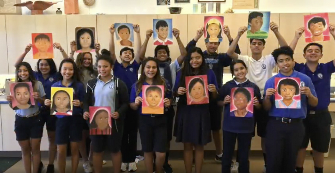 This year, Mrs. Nicki Barsamian’s 8th Grade Mixed Media Class at KS Maui participated in an international service-learning project known as the Memory Project. The Memory Project is a nonprofit organization that invites art teachers and their students to raise money and create portraits for youth around the world who have faced substantial challenges, such as neglect, abuse, loss of parents, and extreme poverty. The portraits help the children feel valued and important.