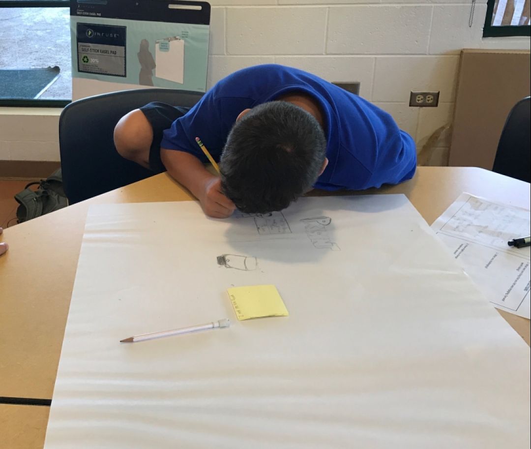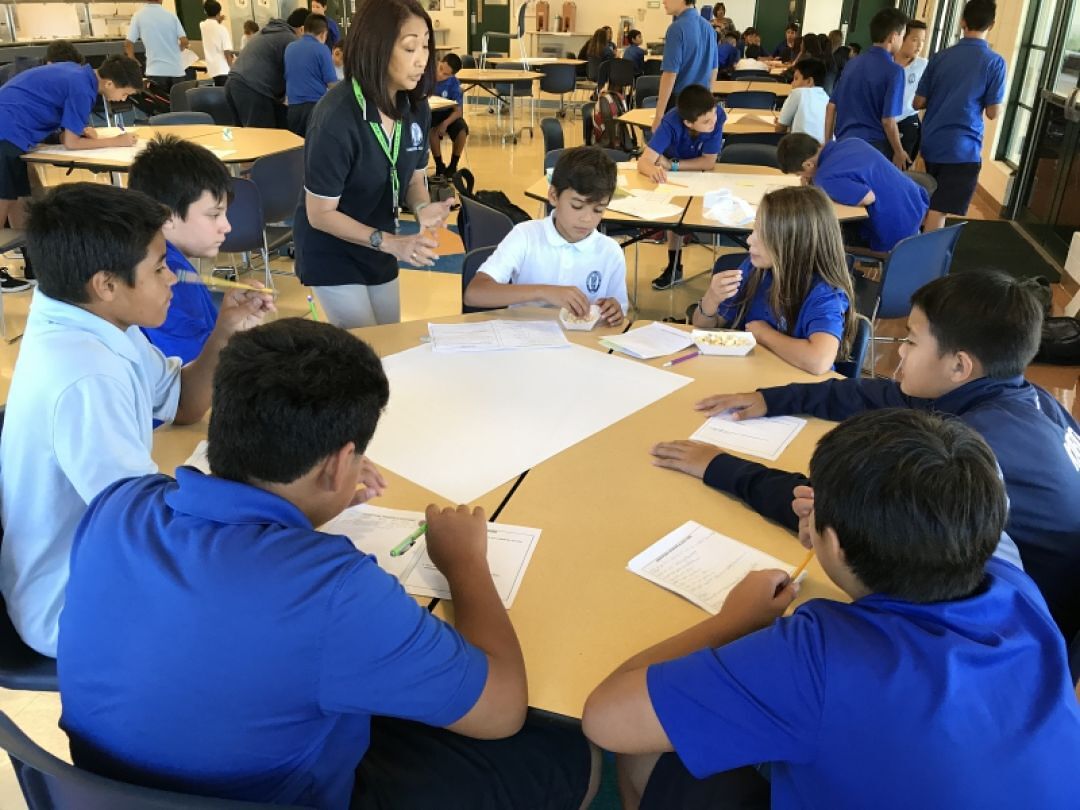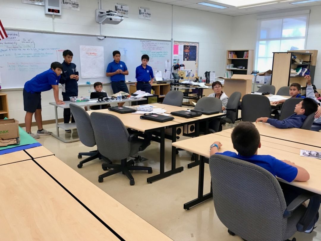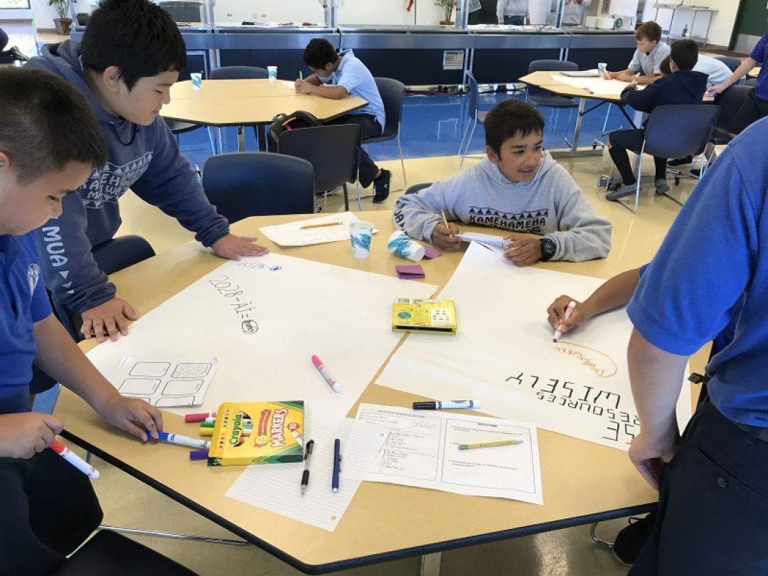 After morning exercises, students ate lunch together and then split back into their respective groups at which point they began brainstorming different ideas to innovate their own education in the future. Students watched videos showing what artificial intelligence, mechanization, and other technological innovations might hold for future careers. A world with and increasing population and a decreasing number of jobs due to automation presents particular challenges for current generations.