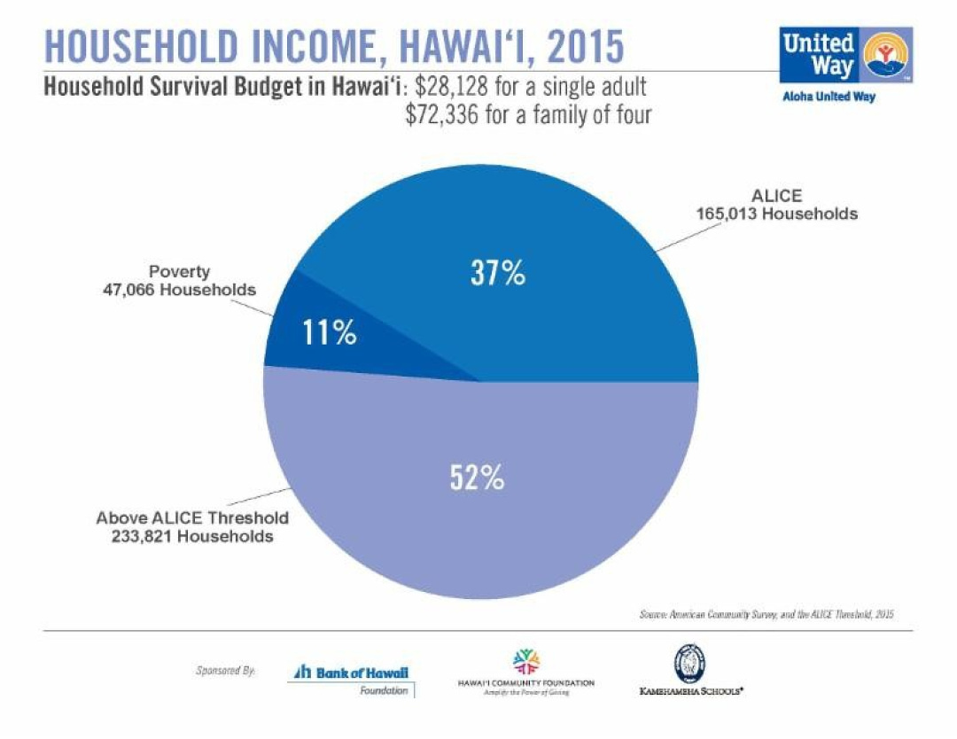 Nearly one out of two Hawai‘i households is unable to pay for life’s basic necessities, many are Native Hawaiian. The newly released United Way “ALICE” report is a call to action to inform statewide policy, philanthropy and allocation of resources to support this sector of our community.