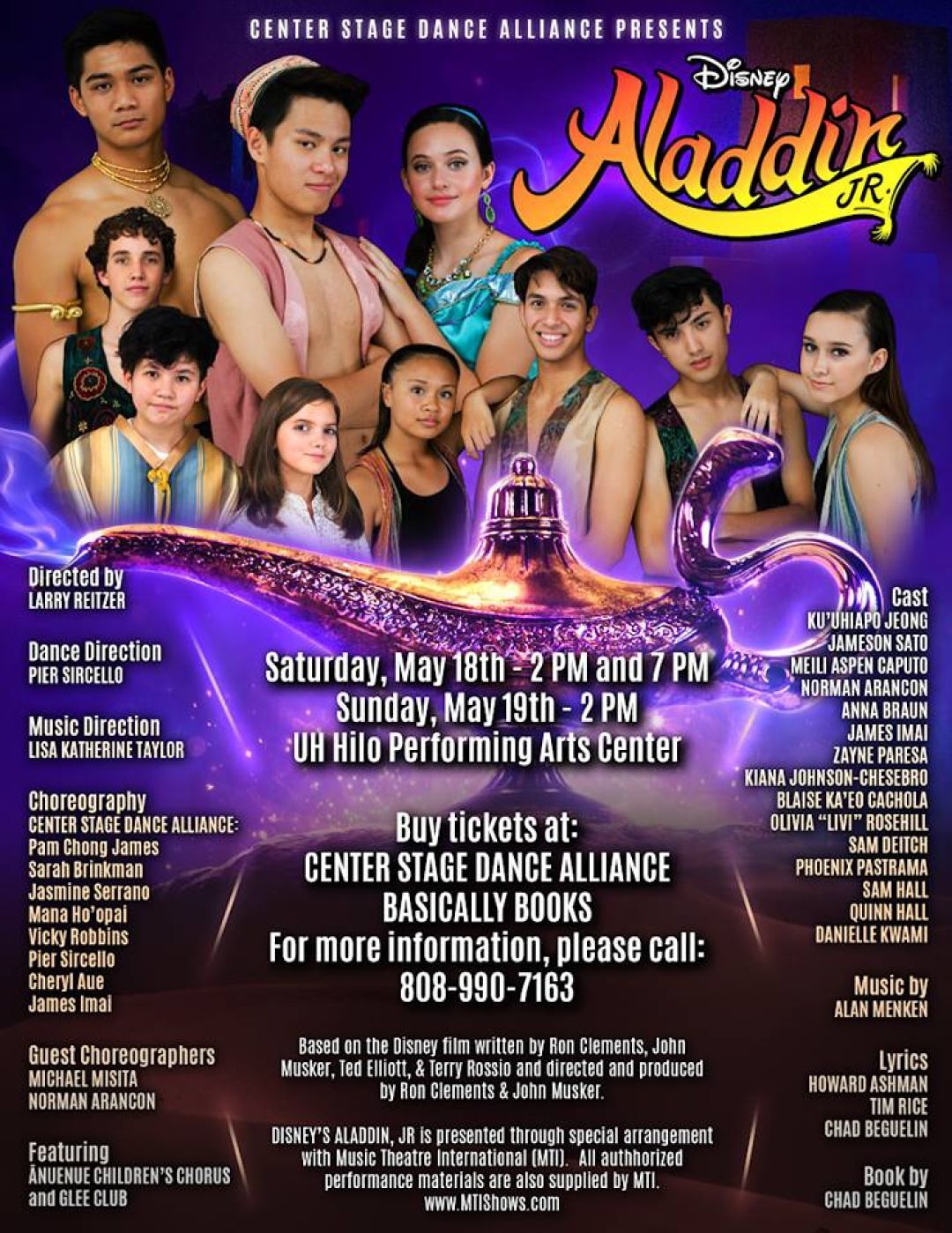 Before the live action remake of Aladdin hits Hollywood screens, you can see the action live with Disney’s Aladdin Jr., produced by Center Stage Dance Alliance Hilo and recognize some familiar faces on stage.