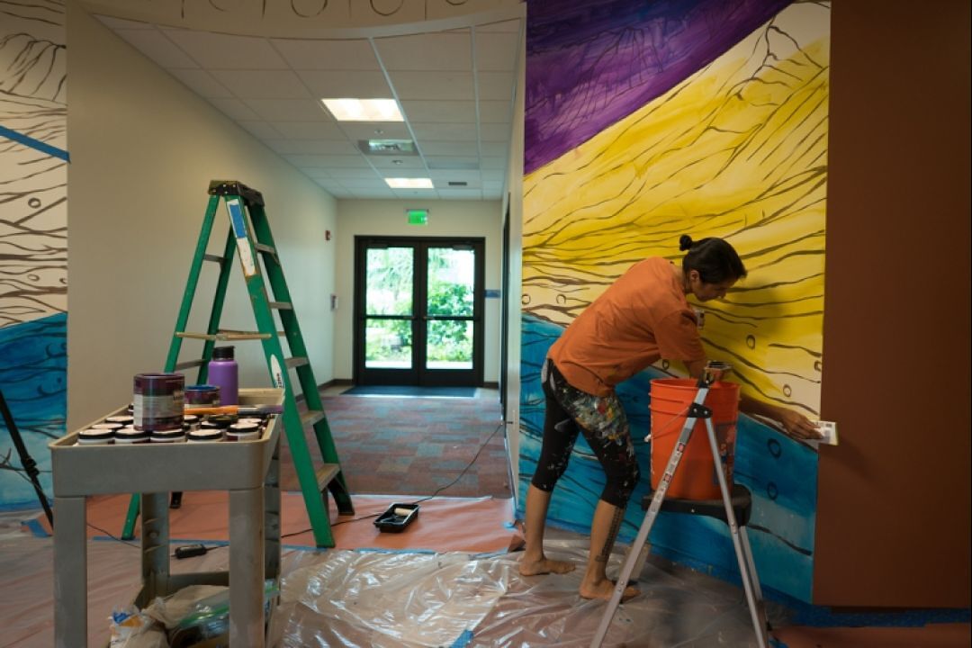 The Kamehameha Schools Community Learning Center at Māʻili (CLC-M) has partnered with artists John “Prime” Hina and Haley Kailiehu to create murals on its walls with the help of more than 150 preschool keiki, ‘ōpio (youngsters), community members, partner organizations and staff.