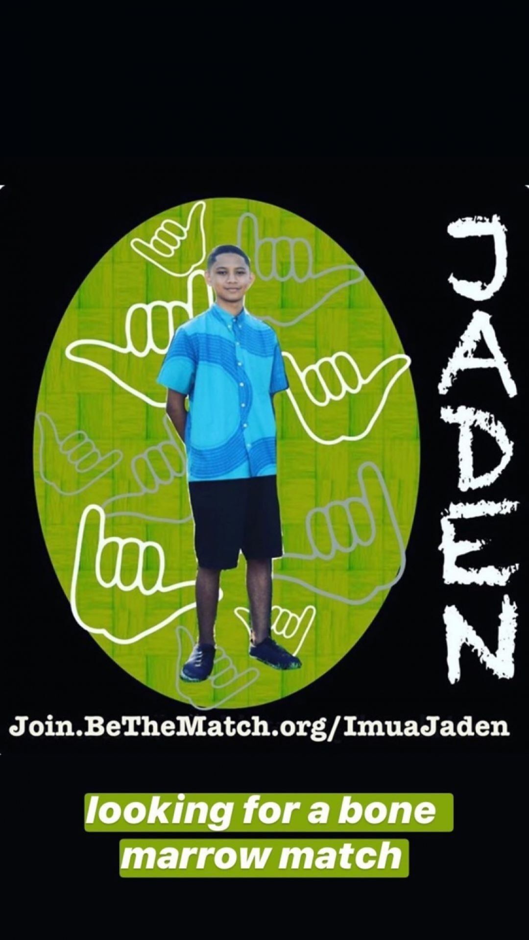 If you are interested in seeing if you can help Jaden or others, please use this link to register: http://Join.BeTheMatch.org/ImuaJaden
