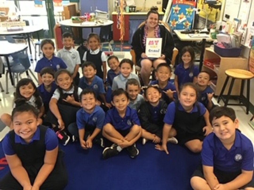 Makena wanted to expose younger children to something fun and interesting, like a picture book, while at the same time writing it in both English and Hawaiian. She shared the book to Kumu Kalehuawehe’s first grade class, where she read the book and asked the haumana questions about the story and their knowledge on the Hawaiian language.