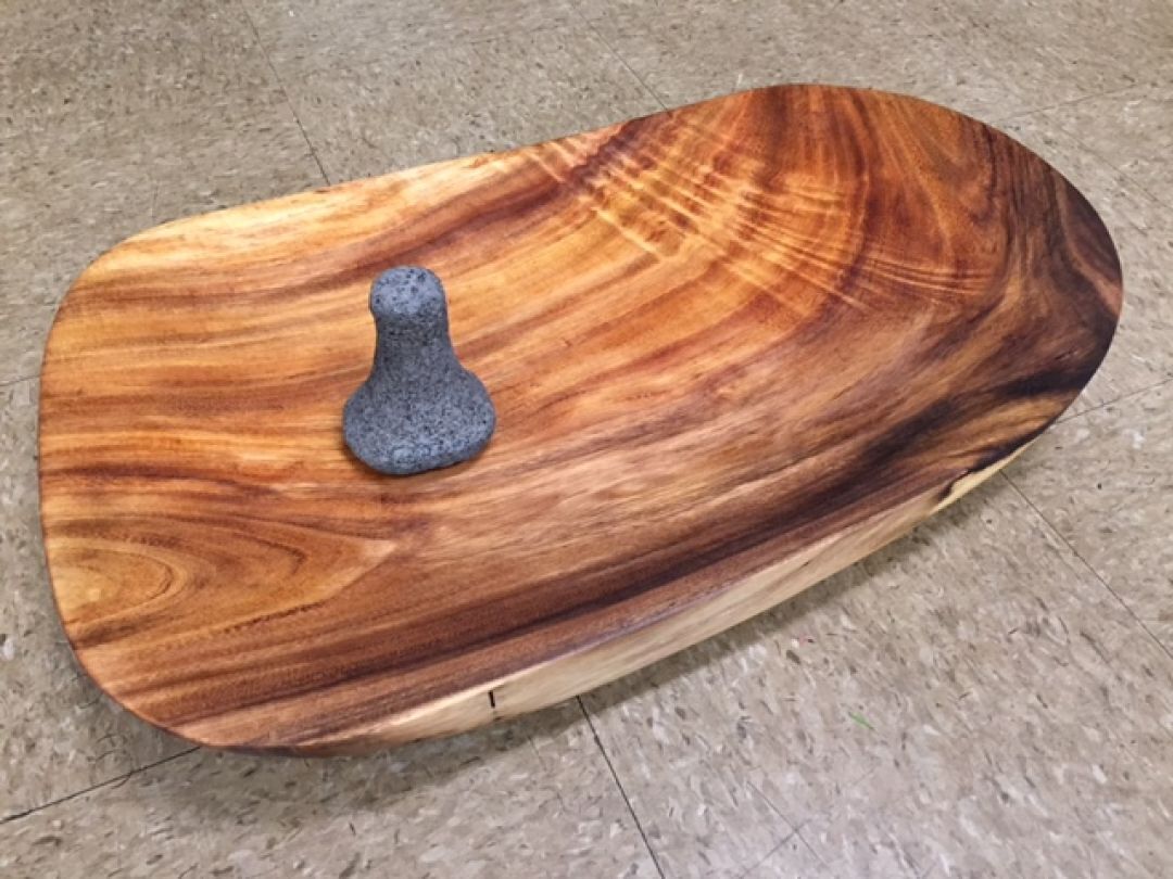 “I had to bring eighteen boards and eighteen stones with me because they didn’t have any,” Kawa‘a explains. “I was so hurt because I grew up on Molokaʻi where there was a board and stone in every home. It was a heart-breaking experience, and I said to myself ‘the loss of these boards means the demise of Hawaiian culture as well.’”