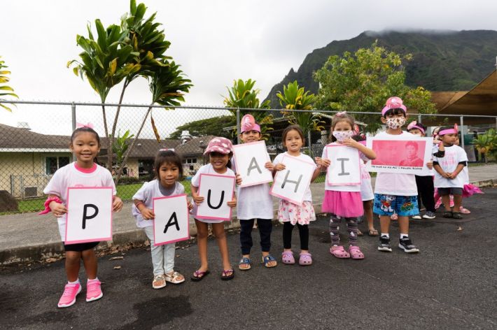 Keiki at Nā Kula Kamaliʻi ma Heʻeia took part in the preschool’s first-ever Pennies for Pauahi and Walk for Pauahi events.