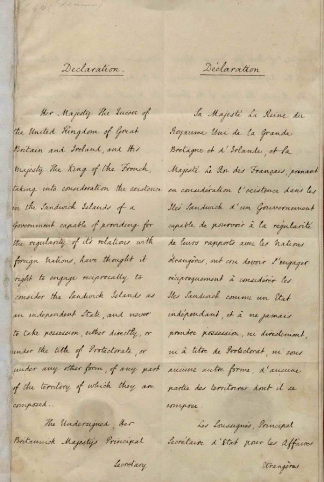 The original Anglo-French Declaration from the United Kingdom Archives, 1843.
