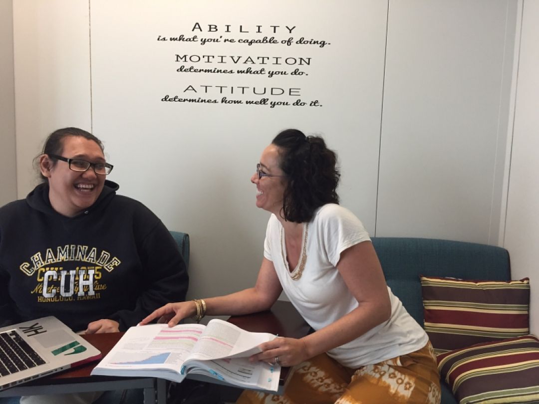 Wraparound academic support is a key component of the scholarship. Each student is provided with faculty support, professional tutoring in math, physics and chemistry, and professional development opportunities. The Kipuka STEM Student Resources Center at Chaminade provides a space for co-working, tutoring and taking time out from the busy day.