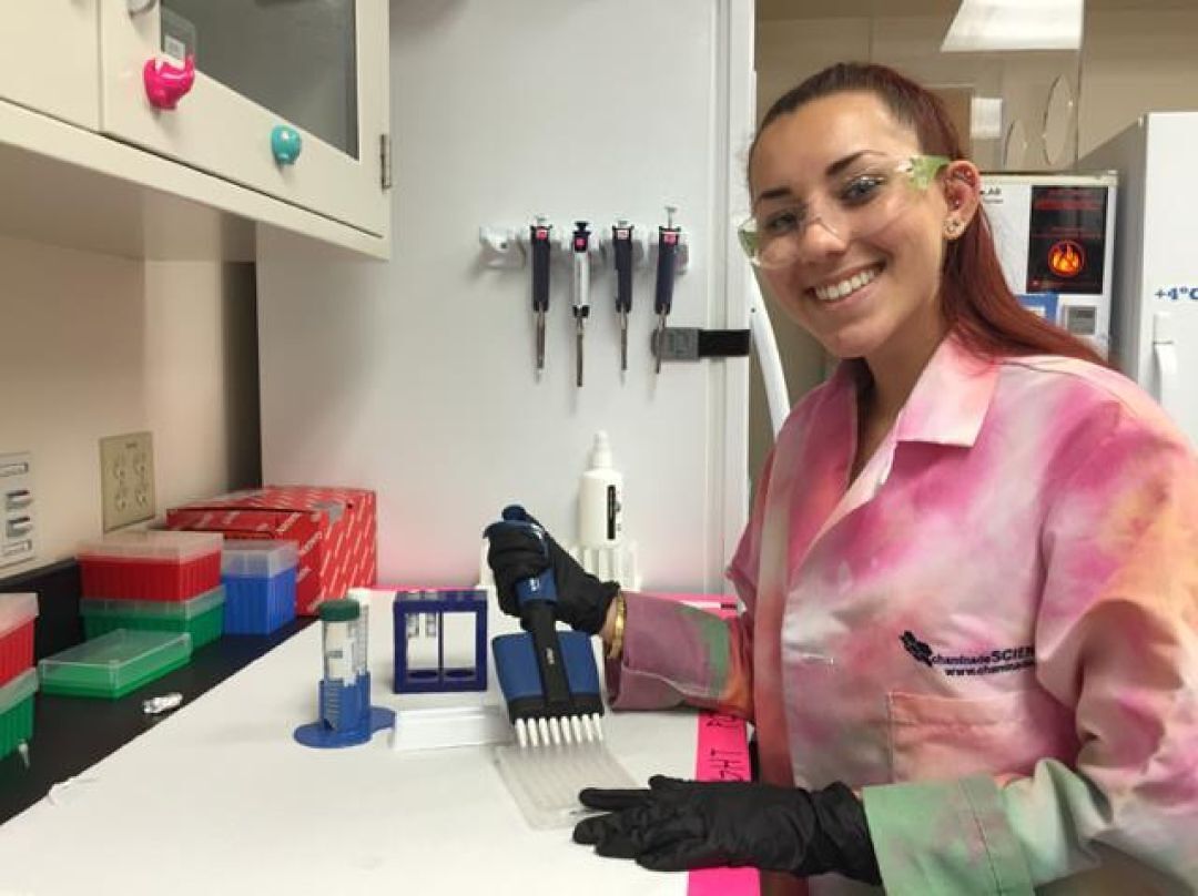 Aspiring M.D./Ph.D. Kaikeline McCarthy hard at work in the research lab. McCarthy is a member of the first cohort of Hoʻoulu STEM Scholars.