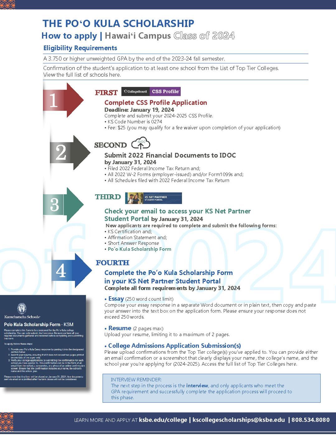 Here is a step-by-step guide for how to apply for the Poʻo Kula Scholarship.