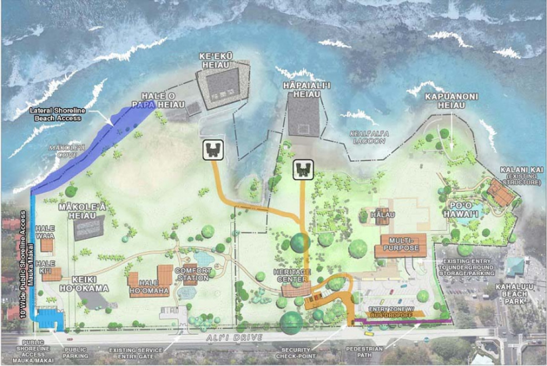The managed access proposal was vetted in the project’s approved Environmental Assessment. It also aligns with the State Historic Preservation Division’s preservation plans and buffer zones for five heiau located on the site – Hale o Papa, Keʻekū, Hāpaialiʻi, Mākole‘ā, and Kapuanoni.