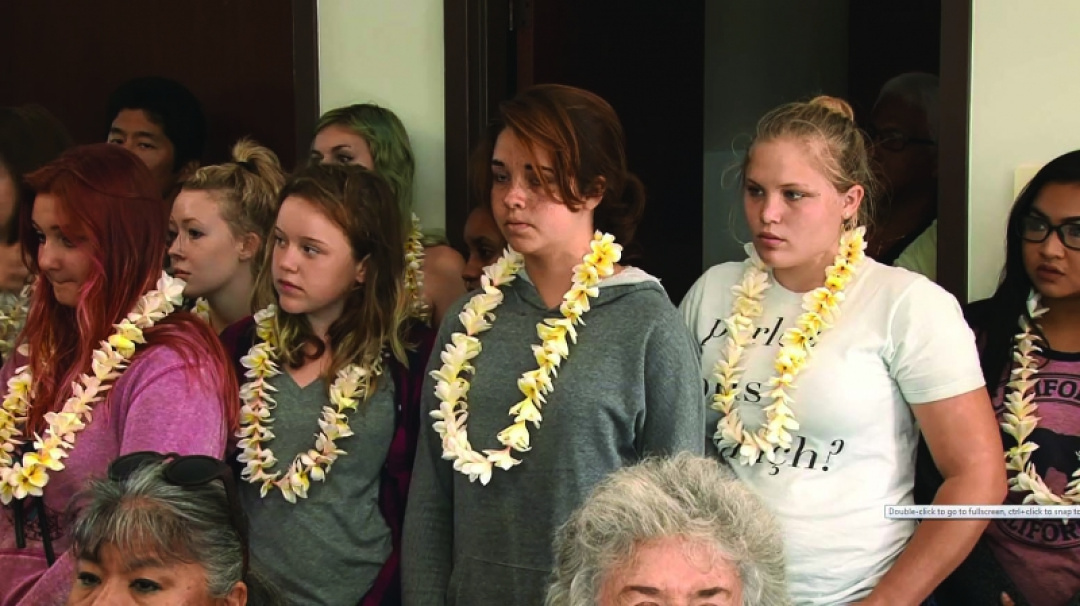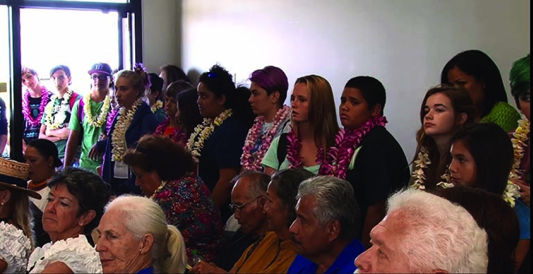 More than 40 supporters from the Hawai‘i Academy of Arts and Sciences in Puna arrive at the hearing.