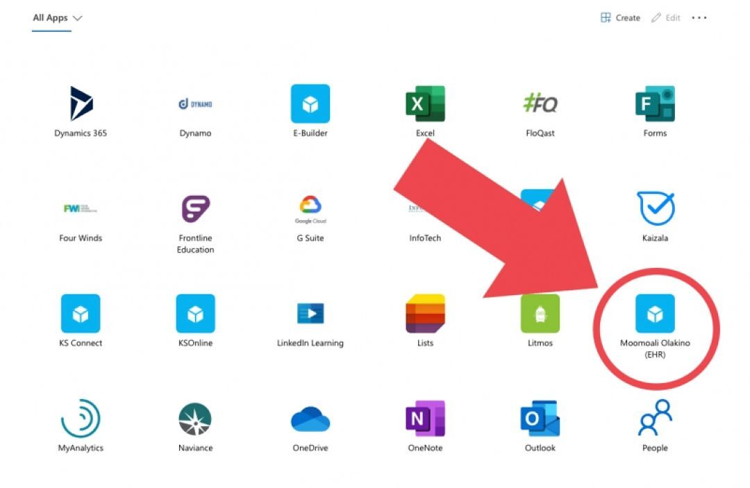 Find the "Moomoali Olakino (EHR)" Icon in your list of Apps to access your forms.