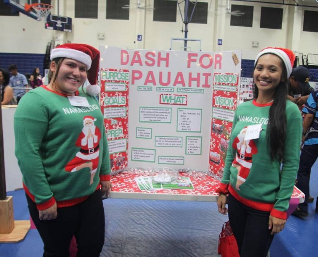 This year’s fun-run/walk event takes on a Christmas theme as seniors Devin Jose and Kamaile Makua take the reins in coordinating the Dash for Pauahi. There are three different race options to choose from—a 5k around the Hawaiʻi campus, a 1.5 mile run inside Paiʻea Stadium, and even a 200 meter dash for keiki.