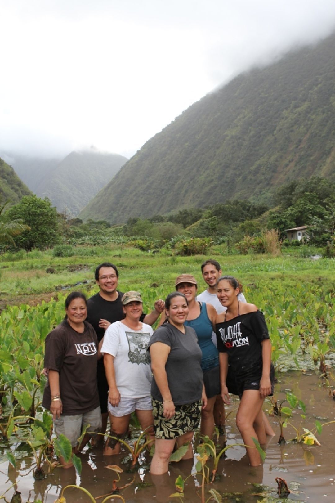 2011-2012 fellows (Papa Pöhaku) – Nani Pai, Keith Chang, Kamuela Meheula-Naihe, Dre Kalili, Mililani Browning, Davis Price and Shanna Willing in Waipio Valley on Hawai’i island.