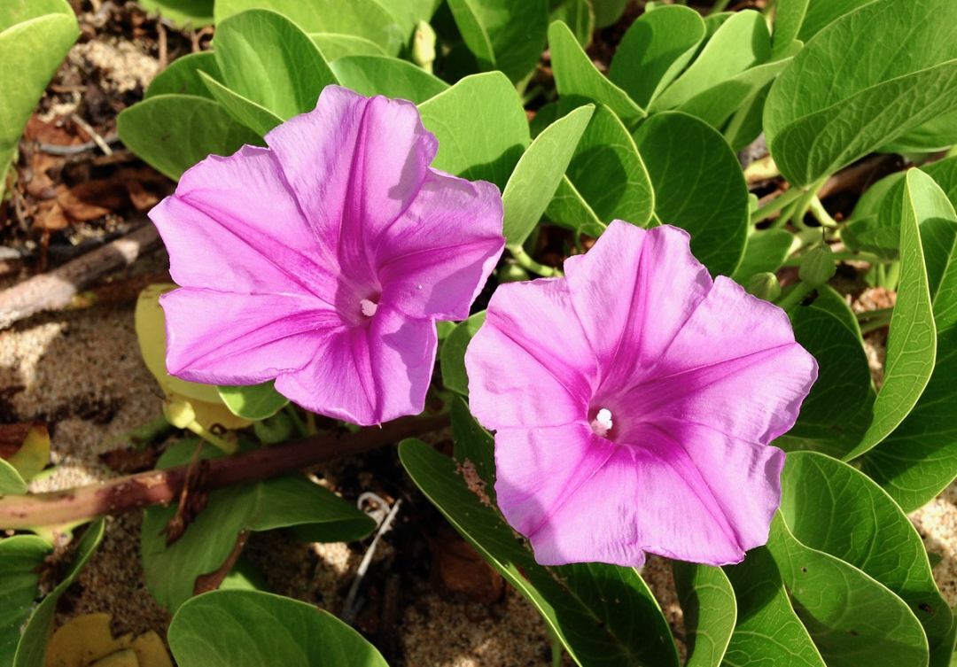 Pōhuehue, a native beach morning glory, is associated with heʻenalu (surfing) in mele and hula. Photo courtesy of Burt Y. Kimura (2017).