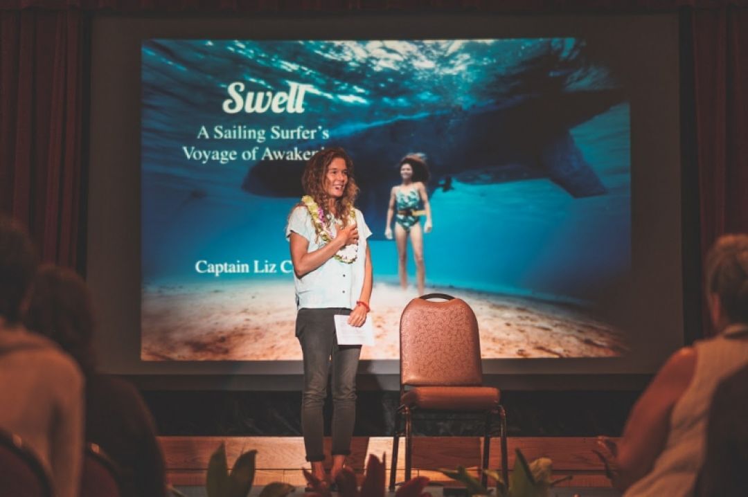 Capt. Liz Clark told stories of her decision to follow her passion for sailing and surfing, circumnavigating the world and living onboard a ship as she discovered the beauty in the world and its people.
