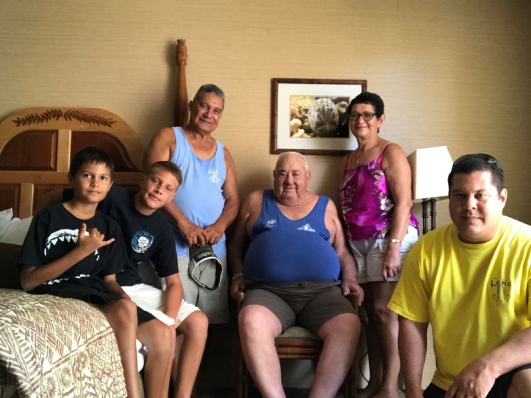 The practice of kālai waʻa is taught across generations and throughout Moananuiākea. From right to left: Alika Bumatay, Gina Harding, Papa Hek Busby, Uncle Ray Bumatay, and Alika’s sons.