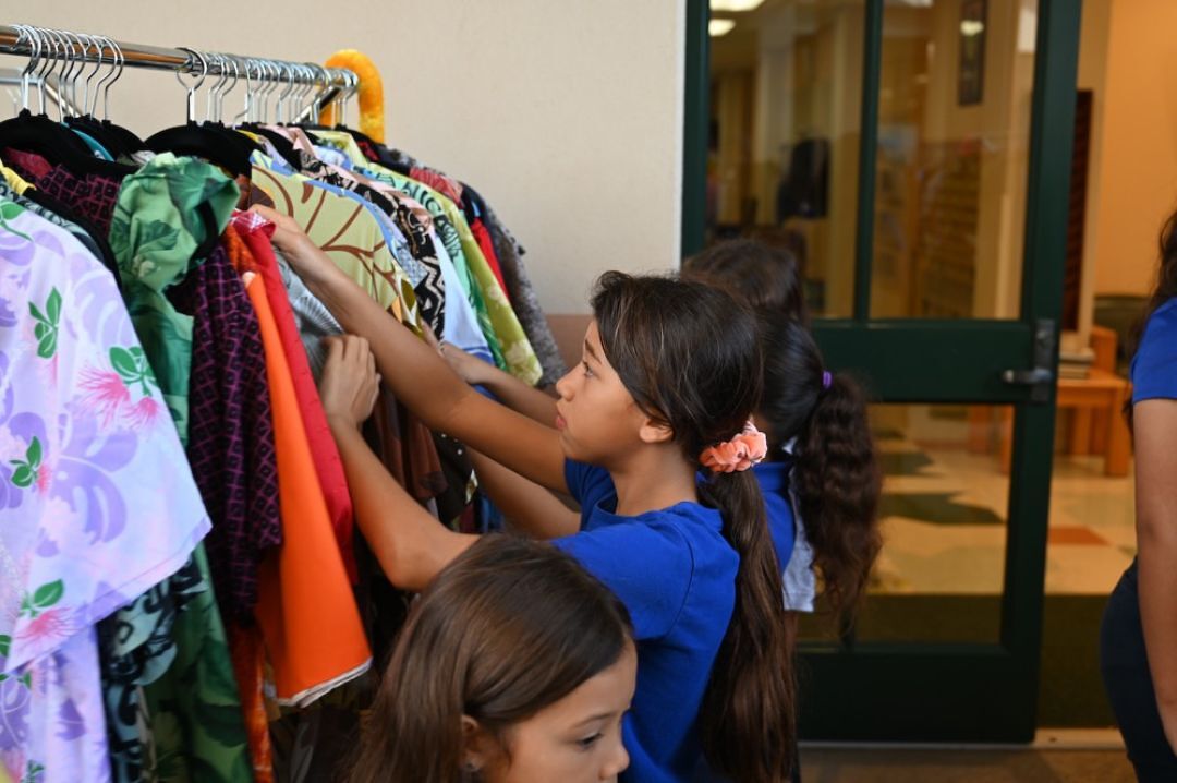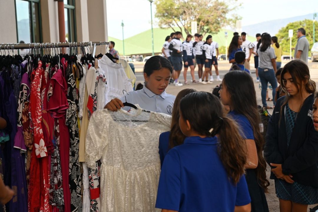 Girls held up dresses to themselves to judge the fit. One such haumana, Kaiana Momoa-Smythe, a fifth grader, seemed to struggle to find something she wanted to borrow.