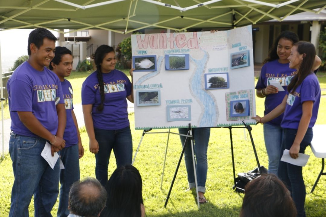 Kūlia O‘ahu students present what they learned throughout their week about water quality and stream restoration at their hō‘ike.