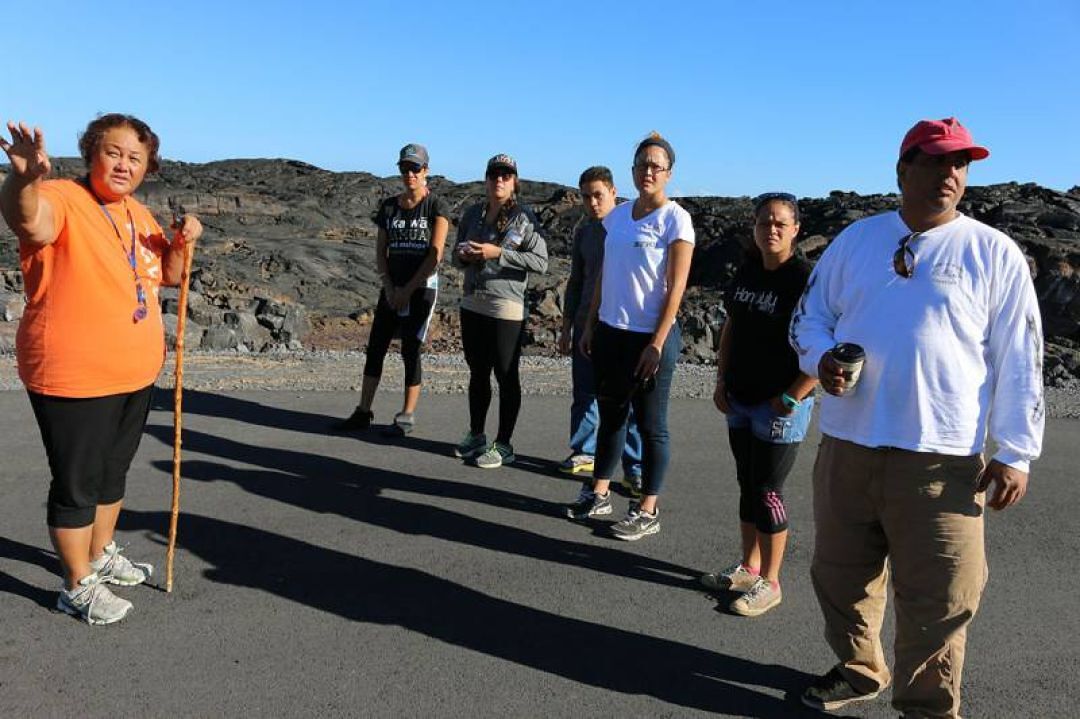 Cohort members stand along the shore to learn more about Kalaemanō on Hawai‘i island.
