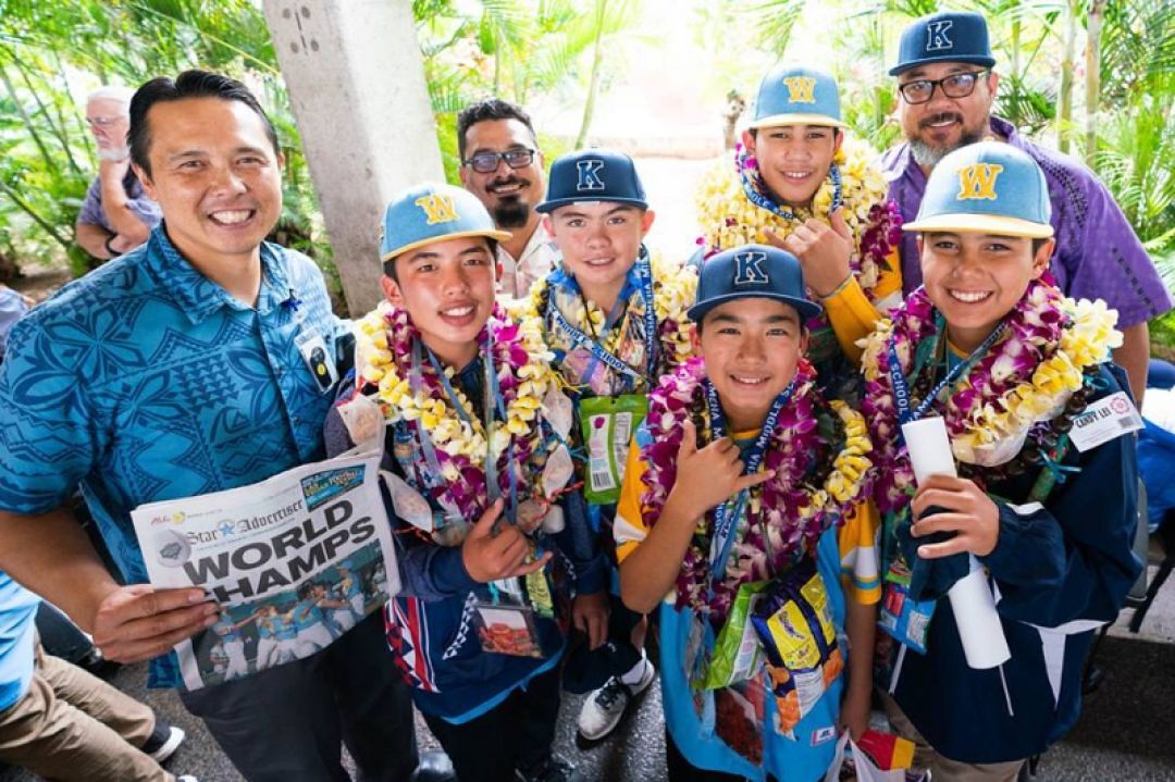 Five student-athletes from Kamehameha Schools Kapālama Middle School were honored this morning in Keawe Gym for their accomplishments as members of the 2018 Little League Baseball World Series Championship squad that brought home the hardware after defeating South Korea, 3-0, on Sunday.