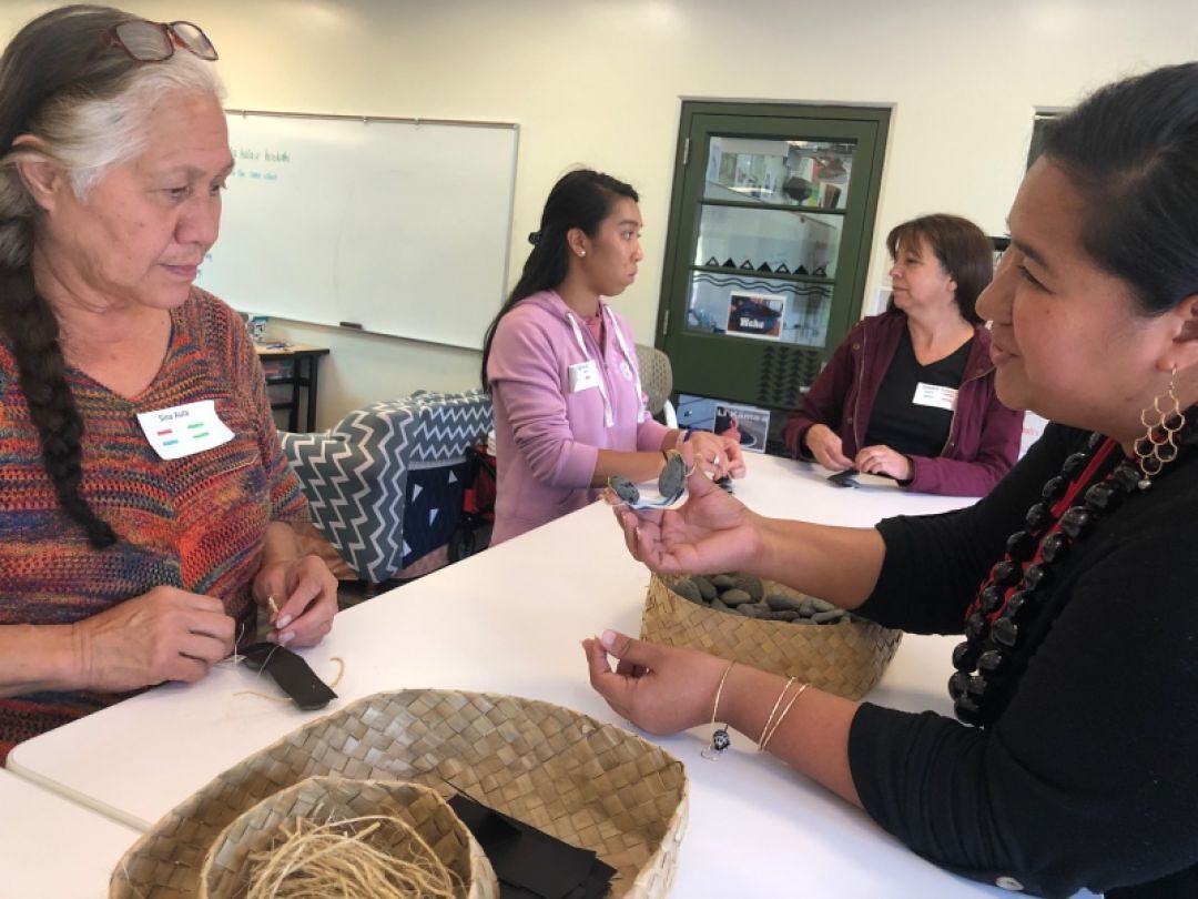 Making ‘ili‘ili castanets was the goal of a workshop that provided kumu with a method to make an implement that allows preschoolers’ little fingers to hold on to pebbles to learn an ʻiliʻili hula.
