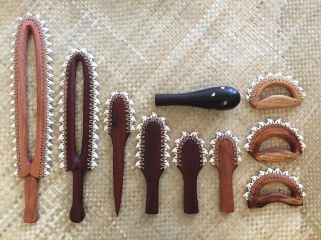 A puʻu lei niho or warknuckle duster is a mea kaua (war instrument) used for slashing.