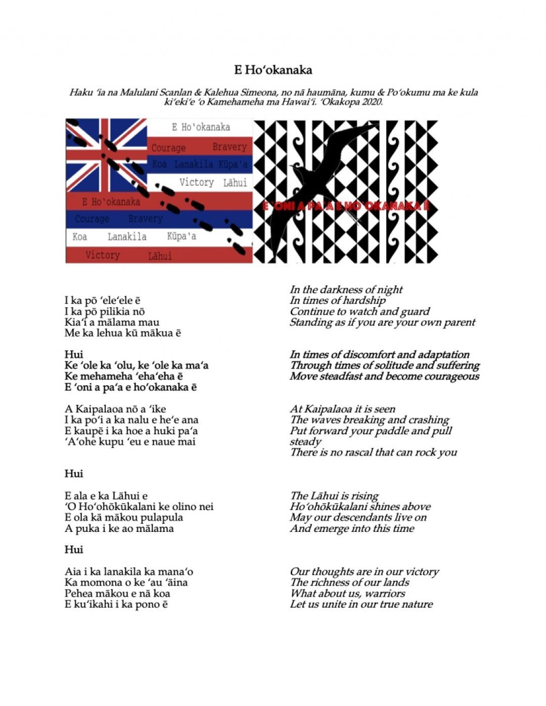 Eia ke mele ʻo E Hoʻokanaka na kaʻu papa Advanced Colloquial Hawaiian recognizing our Kamehameha Hawaiʻi Kula Kiʻekiʻe theme of the year: Hoʻokanaka.