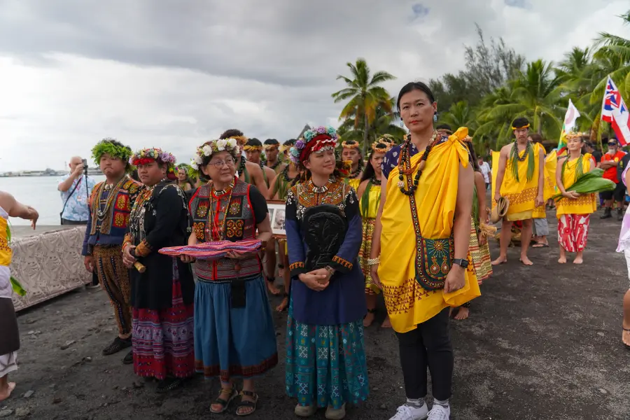 Hikianalia made landfall at Hōkūleʻa Beach and engaged in a formal ceremony at Pāʻōfaʻi at the Papeʻete waterfront. The French Polynesian government and the Tahitian community as a whole are very aware of the ancient Austronesian language and seafaring heritage that we all share with Taiwan. But they did not expect that a princess, a high chiefess of stature from our Austronesian homeland, would be there in full regalia, honoring them with ceremonial protocol. It was a very moving and emotional experience for everyone.