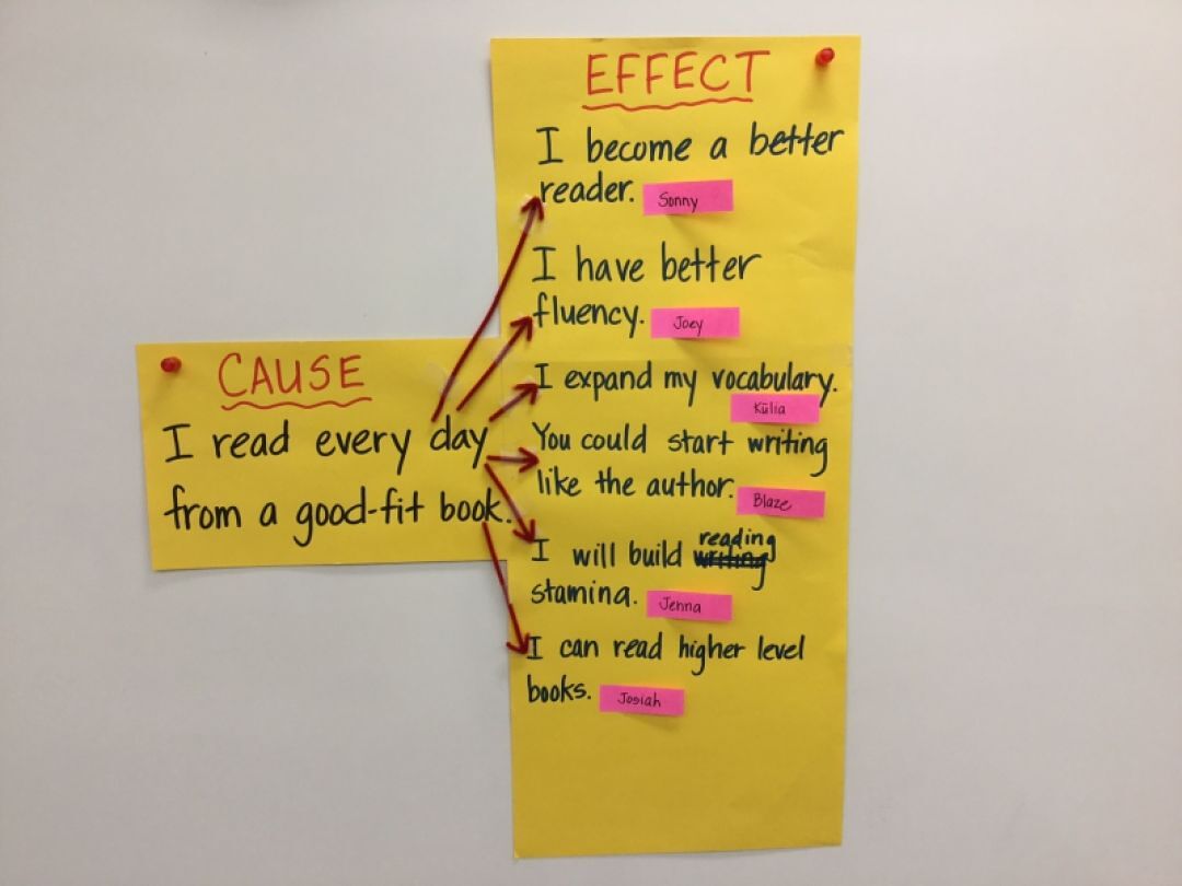 We looked for examples of cause and effect in different text and in our lives. How wonderful when students can tie in their learning to other parts of their day! “You could start writing like the author.”