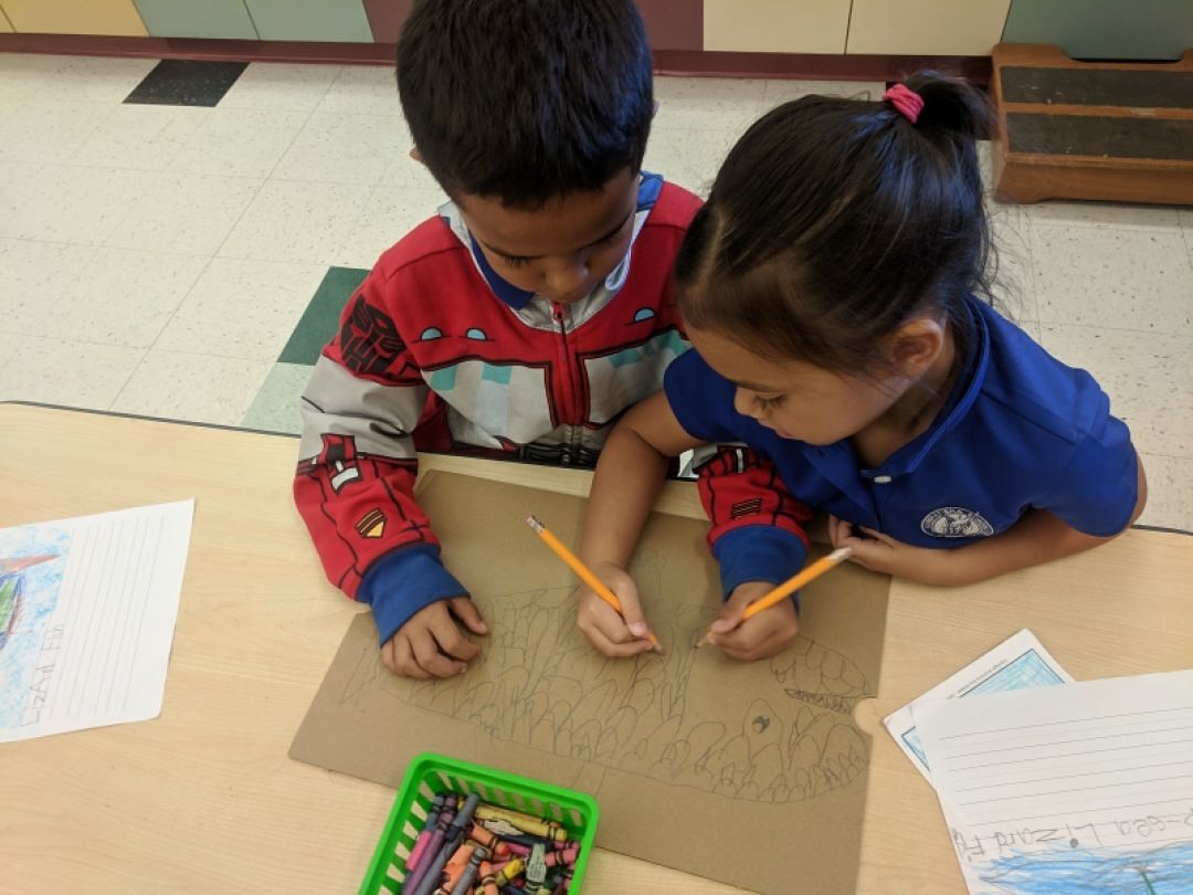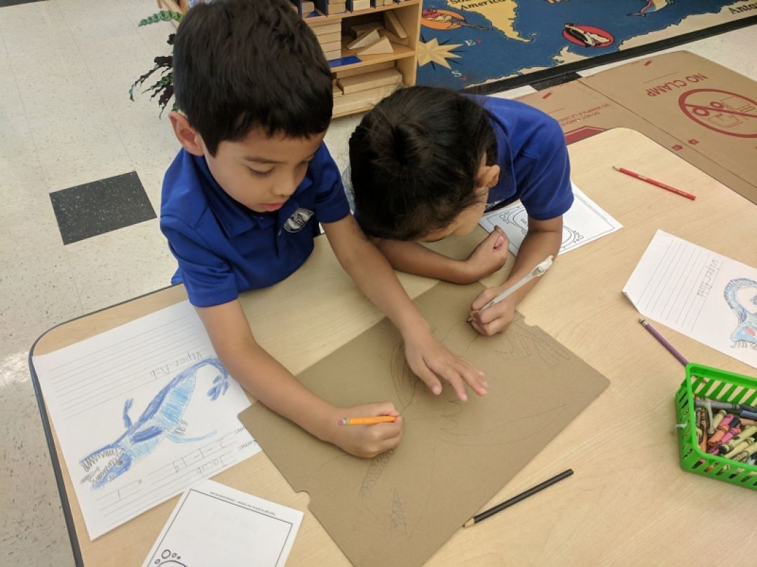 Kindergarten is working on completing a submarine, so they can explore the midnight zone of the ocean. They have been working in pairs to make deep sea creatures and have learned the special things their creature uses to catch prey. They have also been reading, Magic School Bus, On the Ocean Floor.