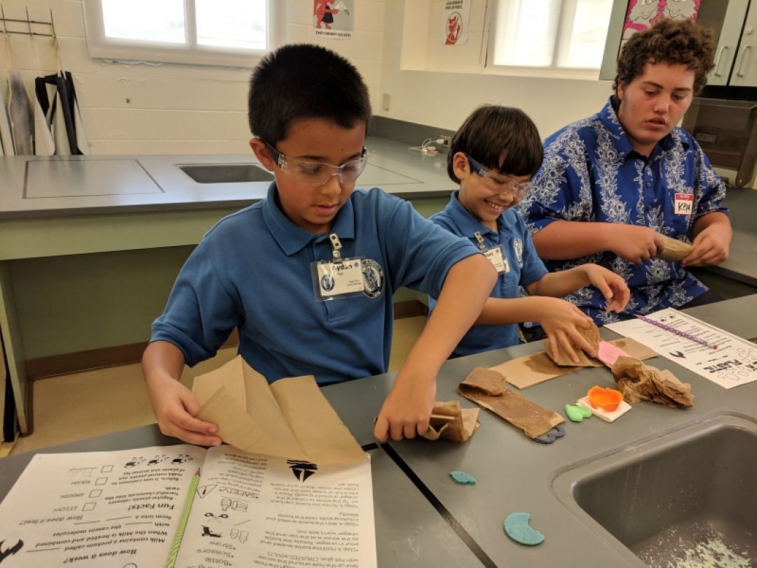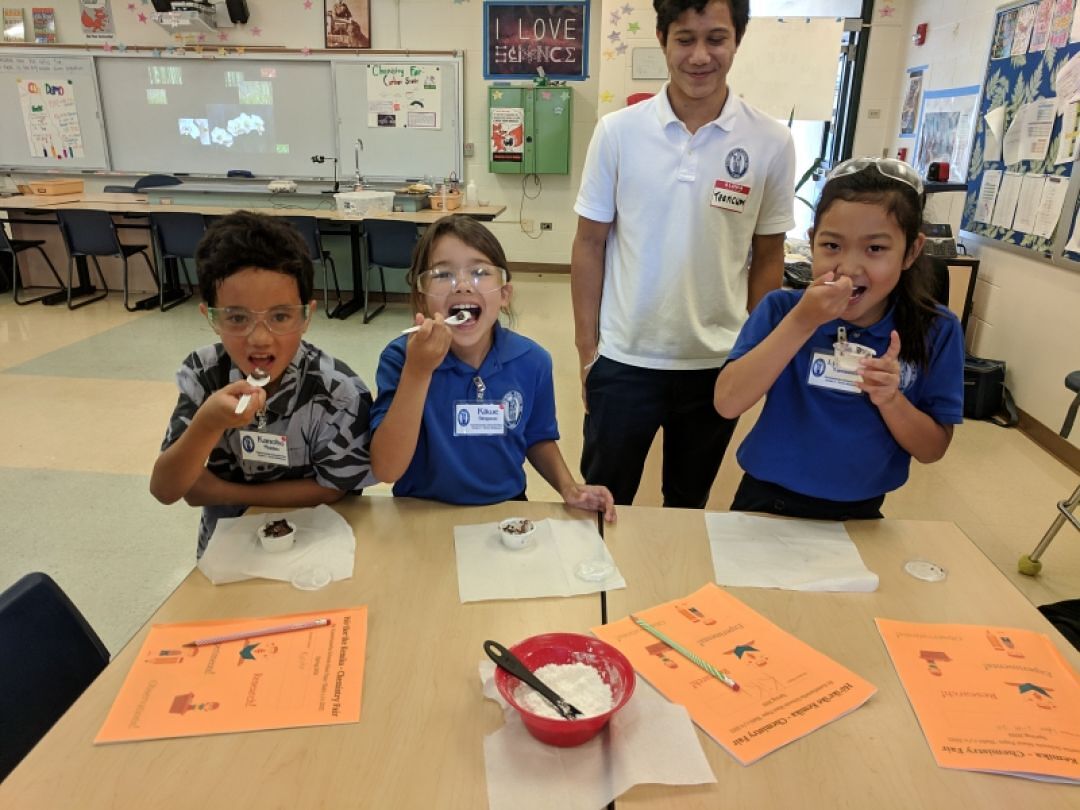 Second grade just attended the High School Chemistry Fair. The students reviewed the three states of matter. Thanks to the high school students they got to make milk plastic, explore various crystals, launch bottle boats, wrote in invisible ink and made and ate coconut whip cream!