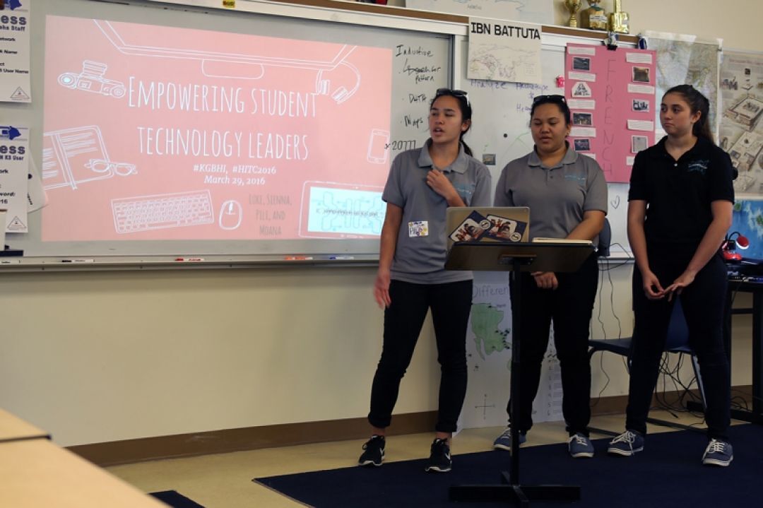 The Kamehameha Genuis Bar (KGBHI) at KS Hawaiʻi presented a session on empowering students to help with technology in the classroom.