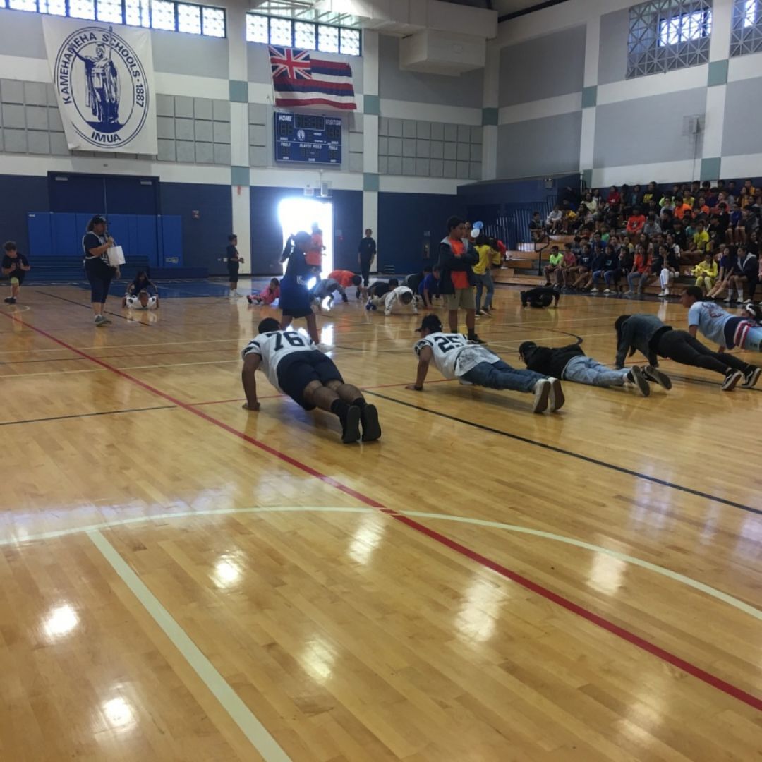 For one week, students replace school uniforms with pajamas, sports jerseys, messy hair, and twinsing to raise their school spirit. A midweek Homecoming Spirit Assembly led by our varsity Cheer Team and captains from different teams pumped up our students. The week long festivities ended at Friday night’s football game where over 40 elementary students joined their older Warrior brothers and sisters in the annual halftime parade. Mahalo to our Hui Hoʻokele leadership committee for planning our week long schedule of spirit dress up days and recess activities. Mahalo to Kumu Eva for all of her hardwork to provide these opportunities for our haumāna. Mahalo to our high school students for being awesome role models for our younger students and engaging with them in fun ways.