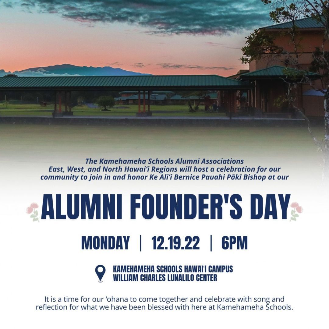 For Kamehameha Schools alumni, there is an Alumni Founder's Day Ceremony held in the evening at 6 p.m. in the William Charles Lunalilo Center. Visit https://www.ksaaeasthawaii.org/ for more information.
