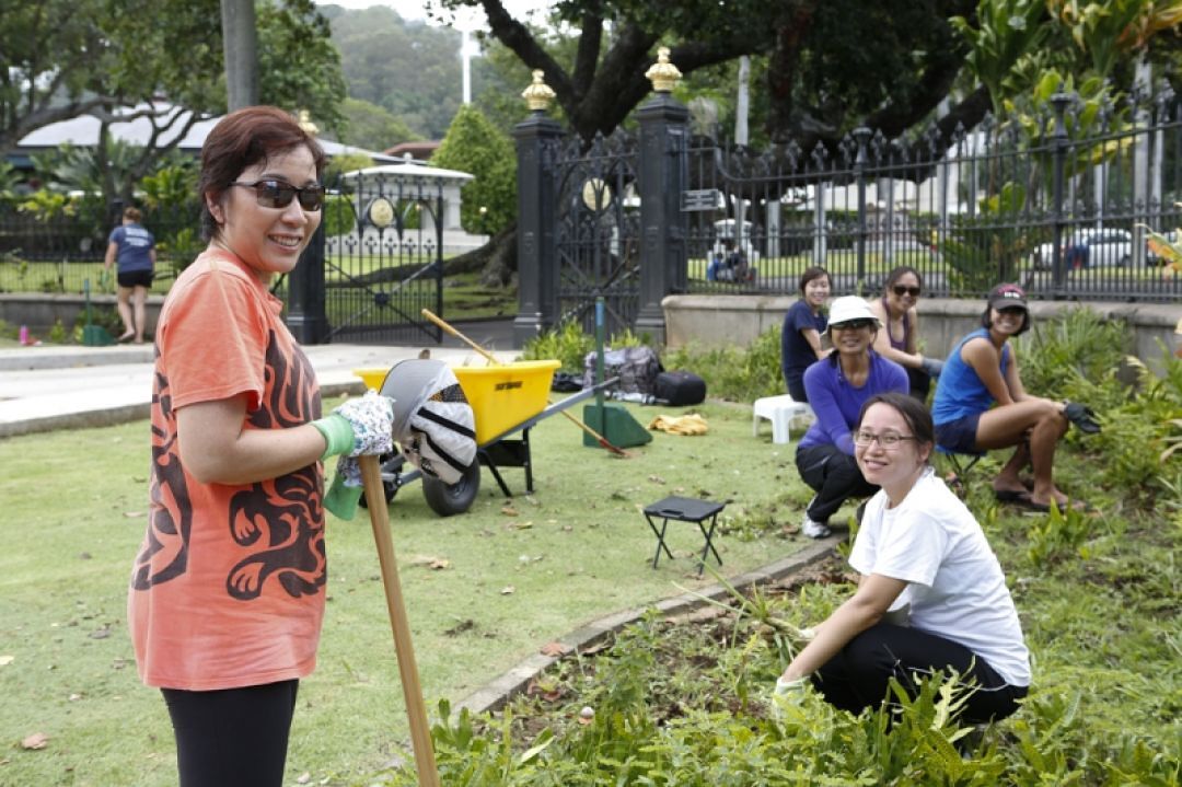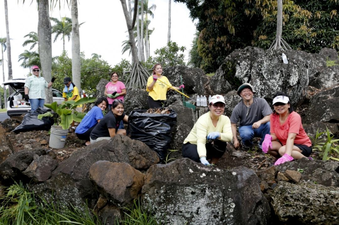 Forty-five Kamehameha Schools Human Resources staffers took rakes and weeders in hand for a service-learning project to beautify Mauna ‘Ala – the Royal Mausoleum. The Nuʻuanu site is the final resting place of Kamehameha Schools founder Ke Aliʻi Bernice Pauahi Bishop.