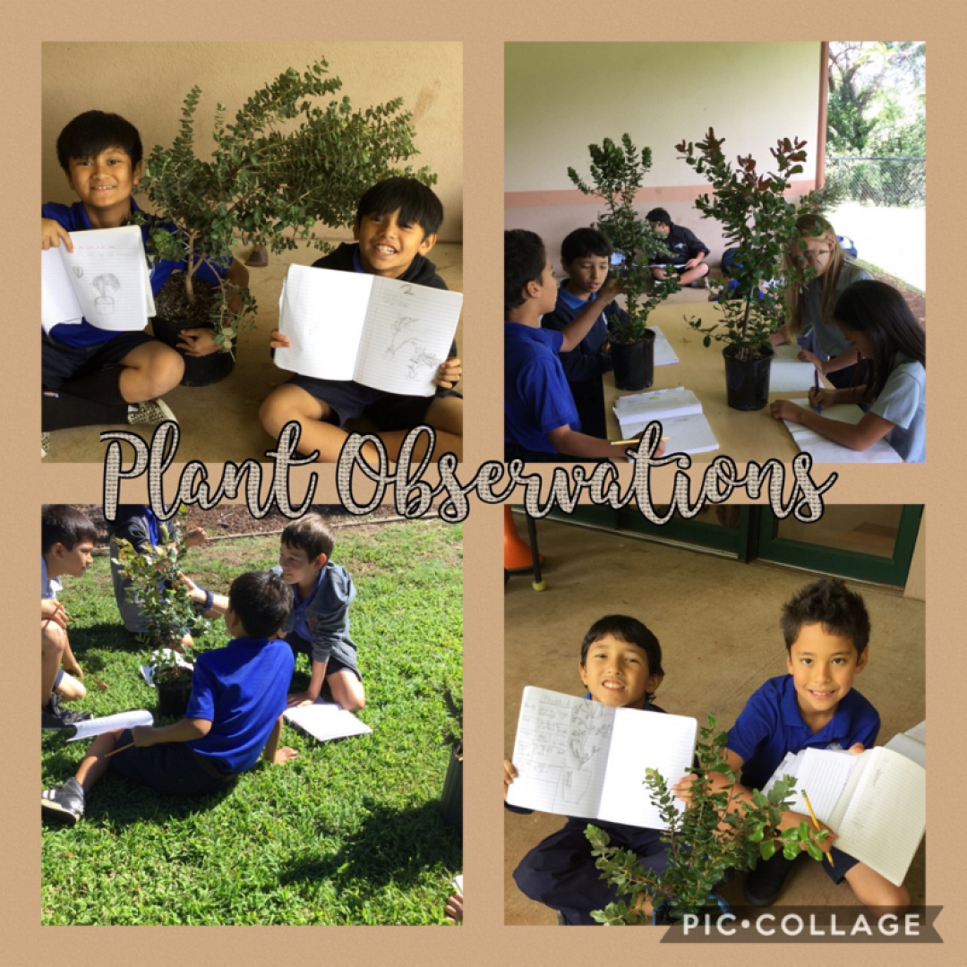 Plants have many different characteristics that make them unique. We were fortunate enough to have some ʻŌhia lehua plants donated to our classroom so we could incorporate a hands-on learning experience. During plants observations, the students were asked to record data about their plant using photos, words, and measurement. These observations will be dated and categorized by plant number so that during the next observation the students could compare and contrast each plant. The students thoroughly enjoyed being outdoors and interacting with the ʻŌhia plants as they danced in the wind.