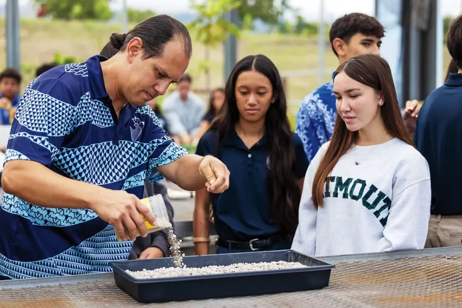 Hōkūao Pellegrino is overseeing this effort, which provides haumāna from māhele lalo and māhele luna the chance to learn and connect with ‘āina and culture outside the traditional classroom.