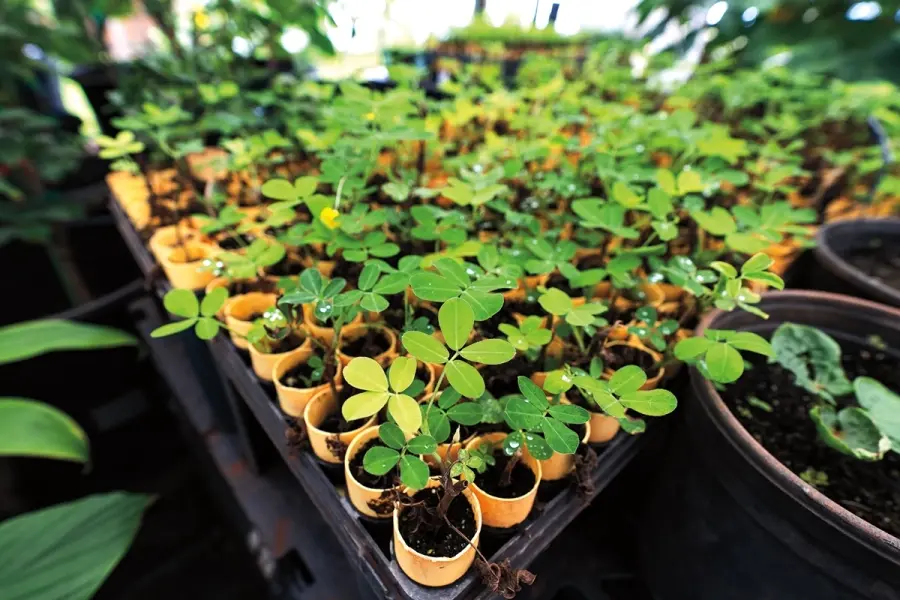 The first plants to go into the ground ma uka may very well be ones nurtured by haumāna at the hale uliuli mau (greenhouse) on the KS Maui campus. In September 2024, some 3,000 ‘a‘ali‘i seeds from West Maui were germinated there. ‘A‘ali‘i are a great foundation for restoring the dryland forest because they are considered among the most resilient native plants in Hawai‘i.