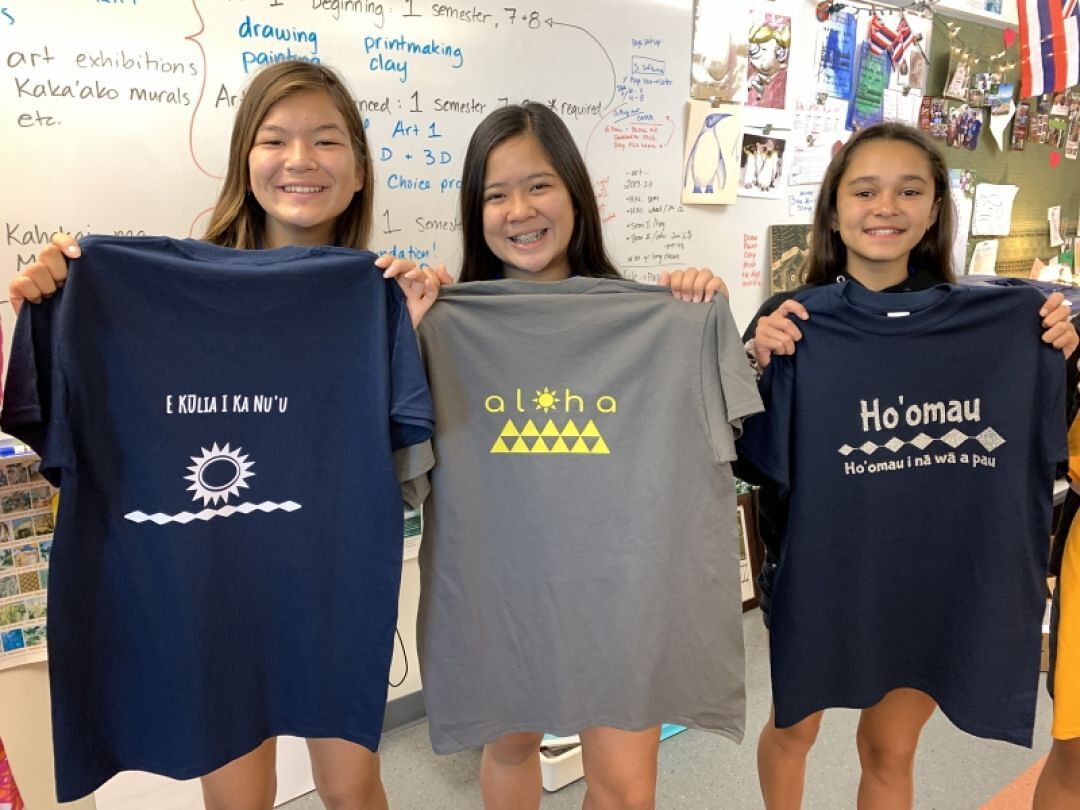 KS Kapālama Kula Waena (middle school) Kumu Malia Kāne, Librarian Judy Yamane and Senior Instructional Technology Specialist Marc Nakayama collaborated on a project called Hē Pālule Mehana (a warm shirt), and haumāna created t-shirts for patients at the Shriners Hospital for Children.