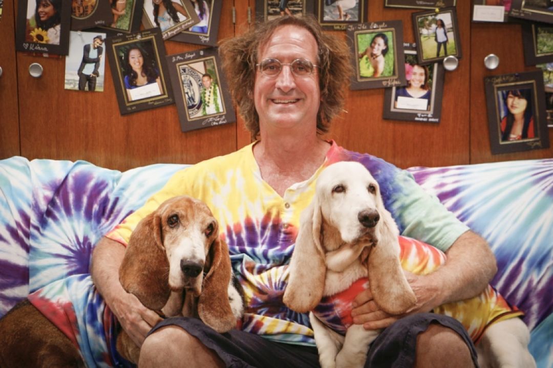 Slagel's basset hounds sometimes make an appearance in the classroom. Both are rescue dogs; Odell from the Hawaiian Humane Society and Hastings from the Arizona Basset Hound Rescue.