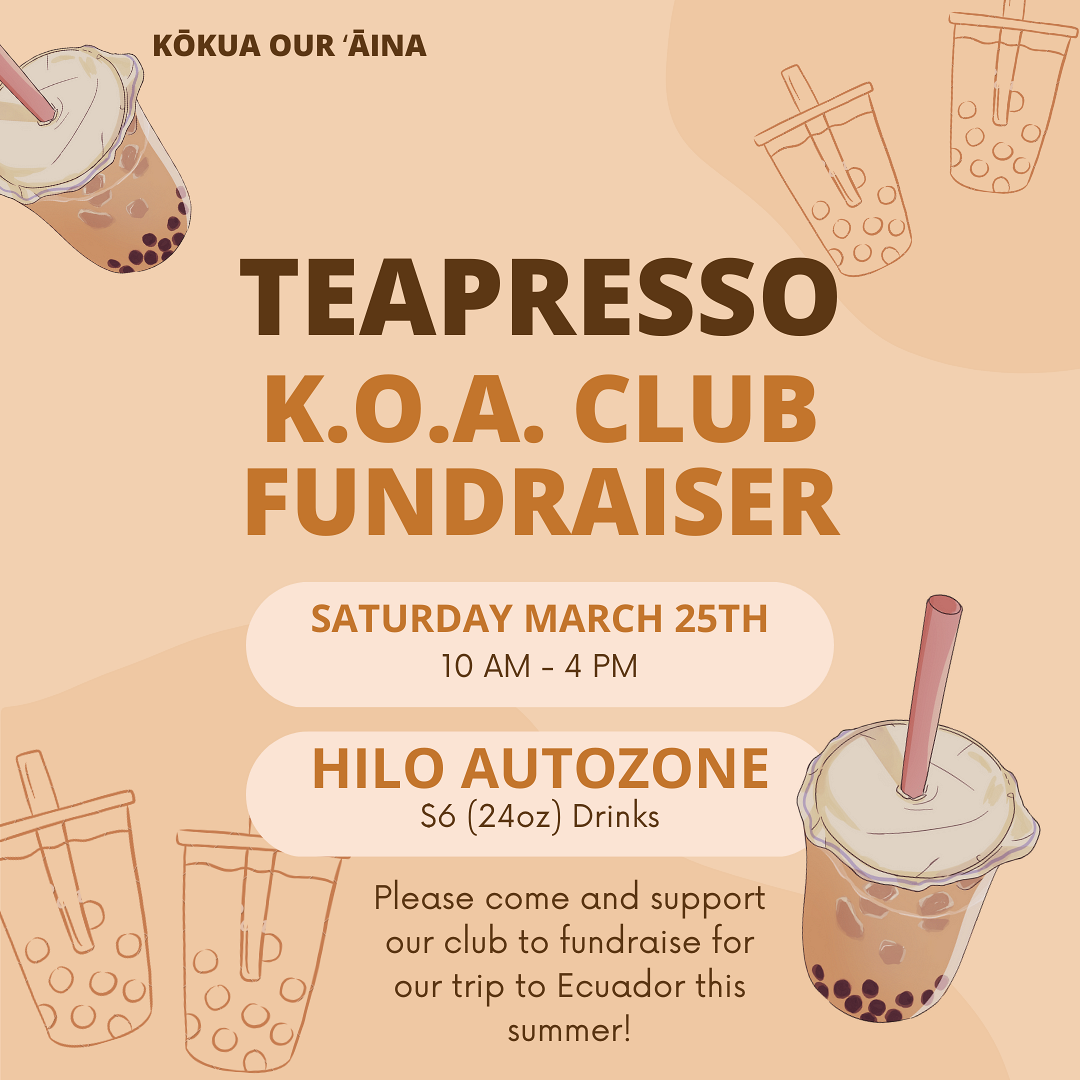 Our Kōkua Our ʻĀina (K.O.A.) Club has two fundraising events this Saturday at AutoZone Hilo (25 E. Puainako St.).