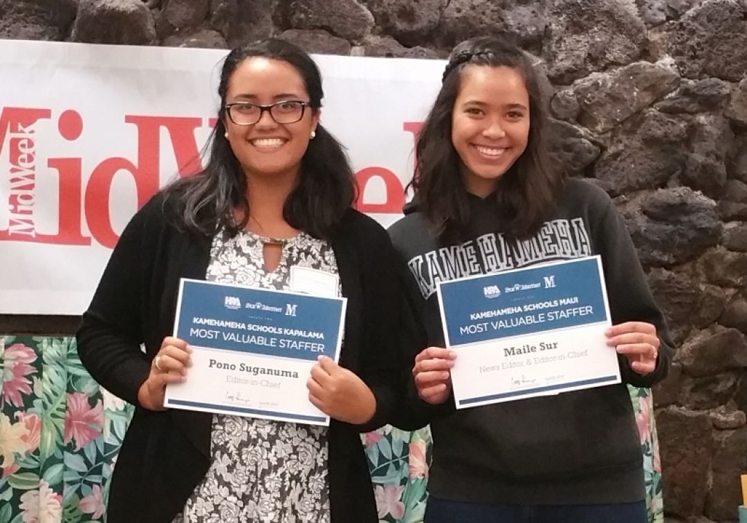 KS Maui’s Maile Sur and KS Kapālama’s Pono Suganuma were named their respective newspapers’ Most Valuable Staffers.