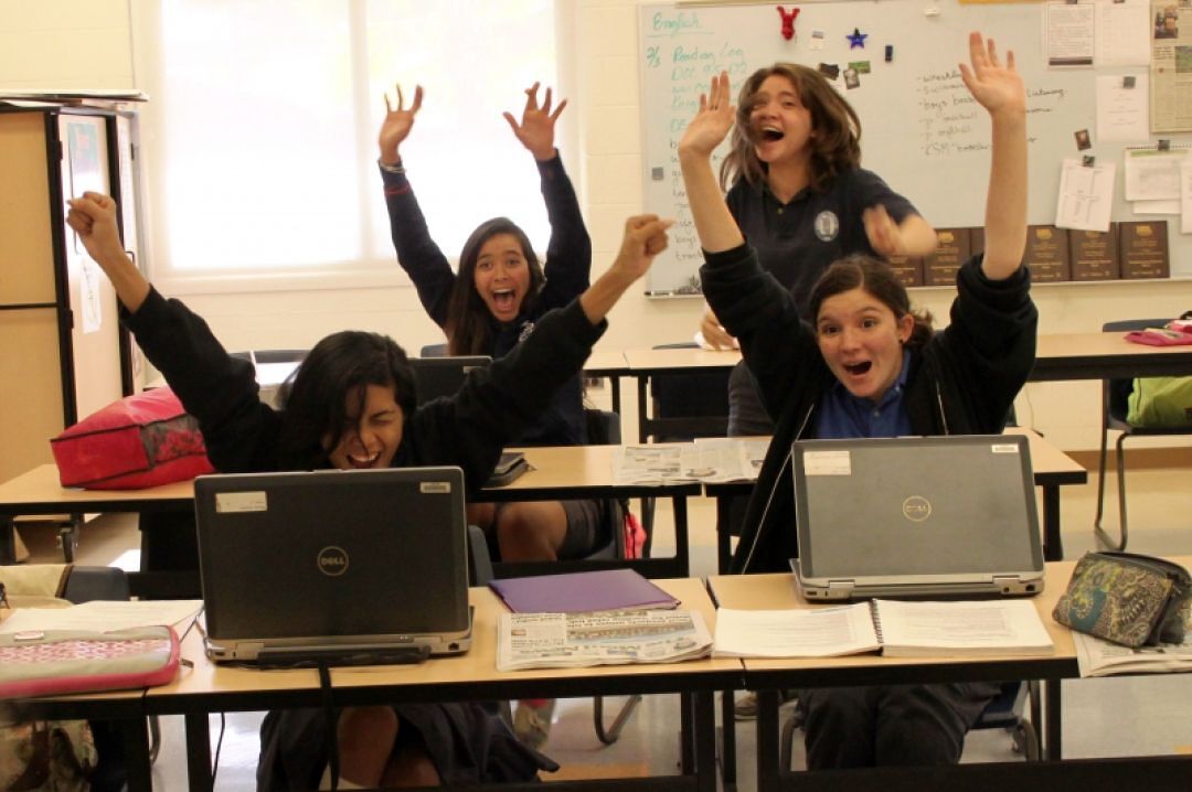 KS Maui student journalists Destinee Murray and Daisy Draper (front) and Maile Sur and Jaylin Kekiwi (back) are thrilled at their national win!